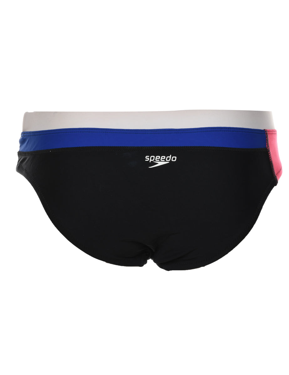 Speedo bold bikini bottoms in black, blue & red complete with contrasting panels and an elasticized waist.
