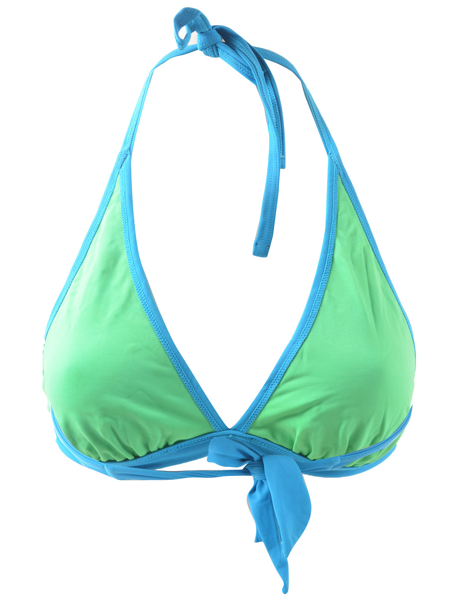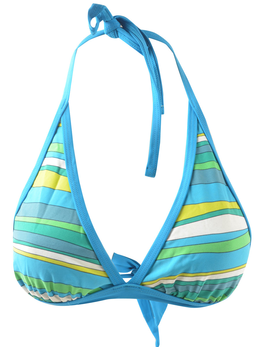 Striped bikini in multi-colour with back tie and a neck tie.