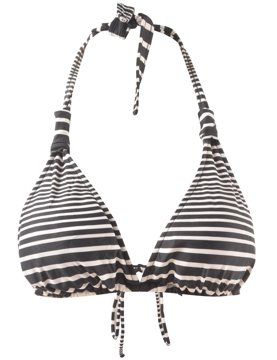 Striped bikini top in black & white with back tie and a neck tie.