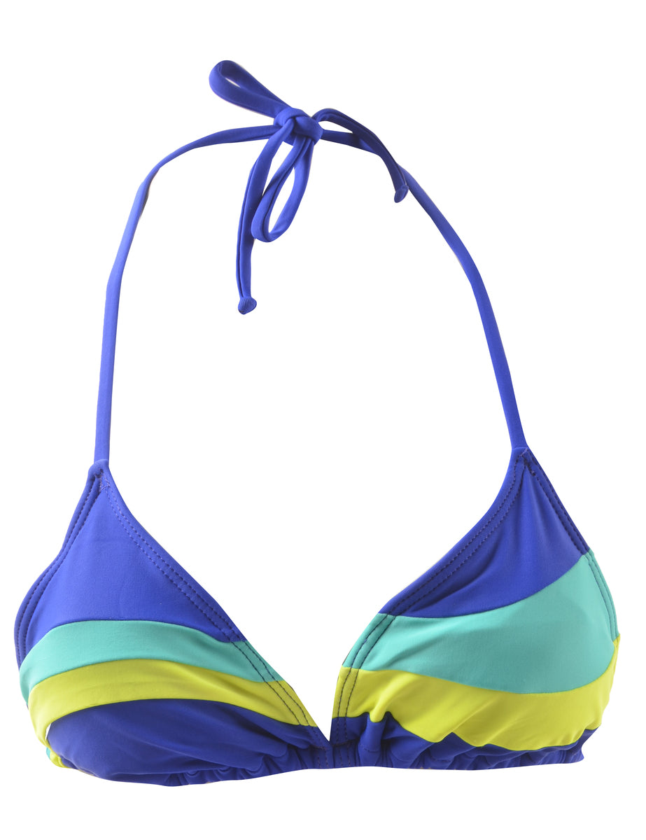 Striped multi-colour bikini complete with back tie and a neck tie.