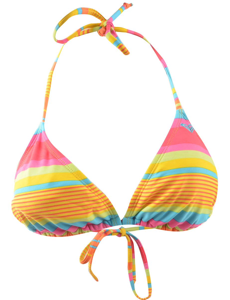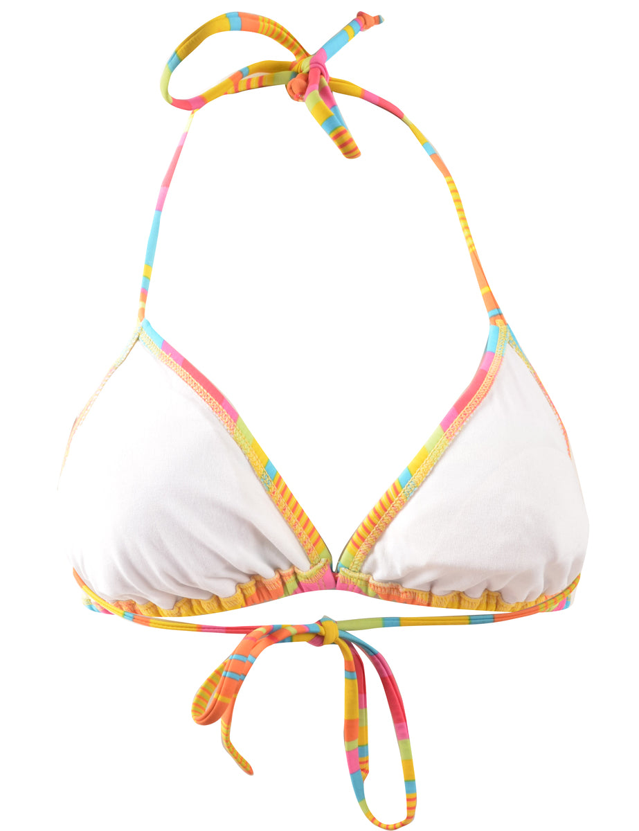 Striped bikini top in multi-colour complete with back tie and a built-in-bra.
