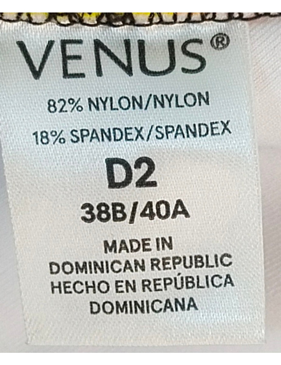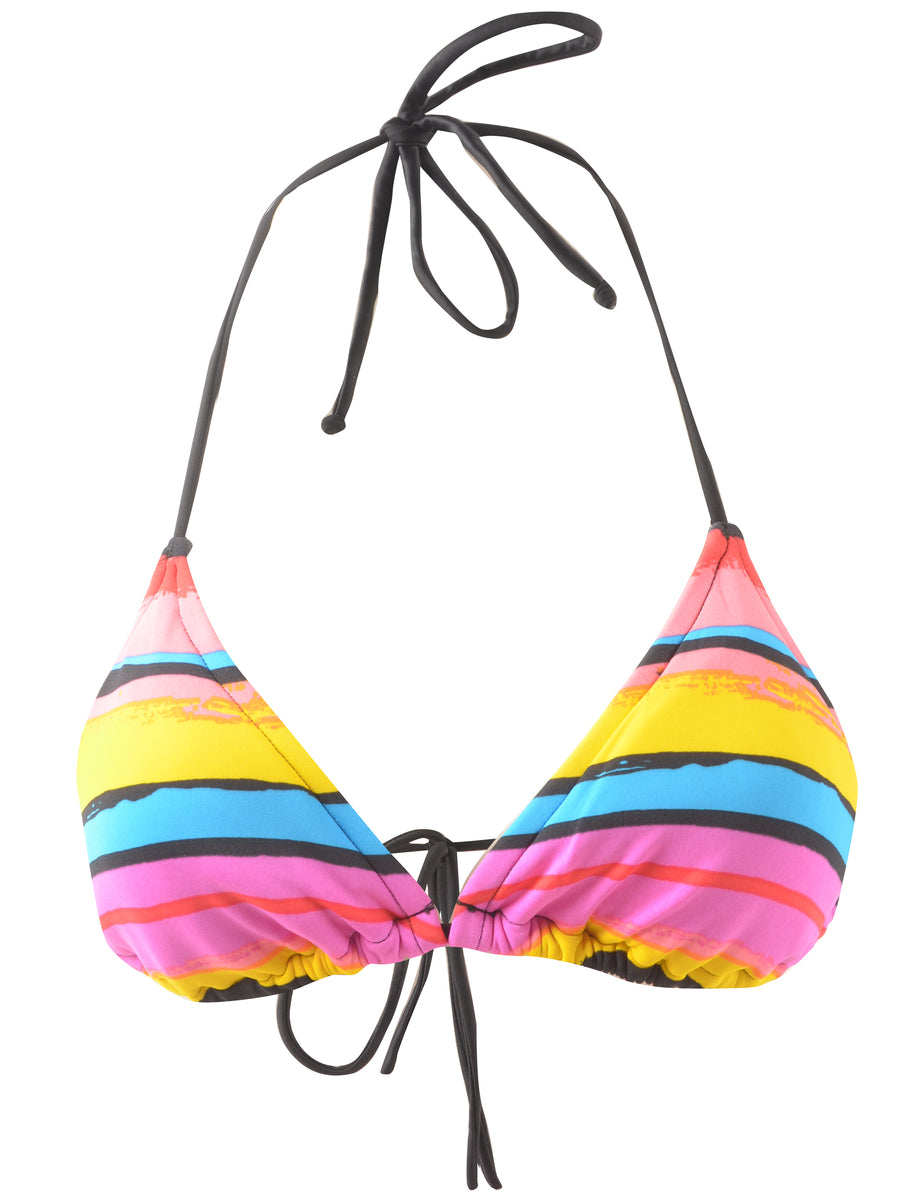 Striped multi-colour bikini top complete with full lining and a built-in-bra. Size 38B/ 40A.