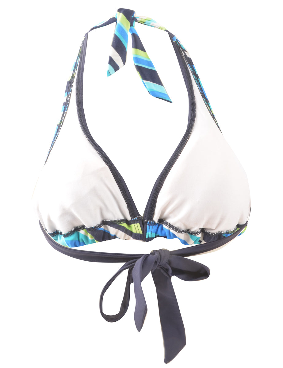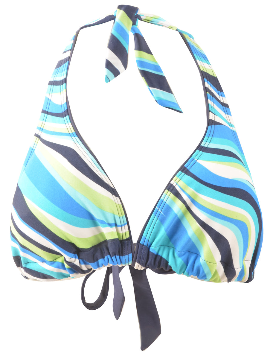 Striped multi-colour bikini top complete with back tie and a built-in-bra.