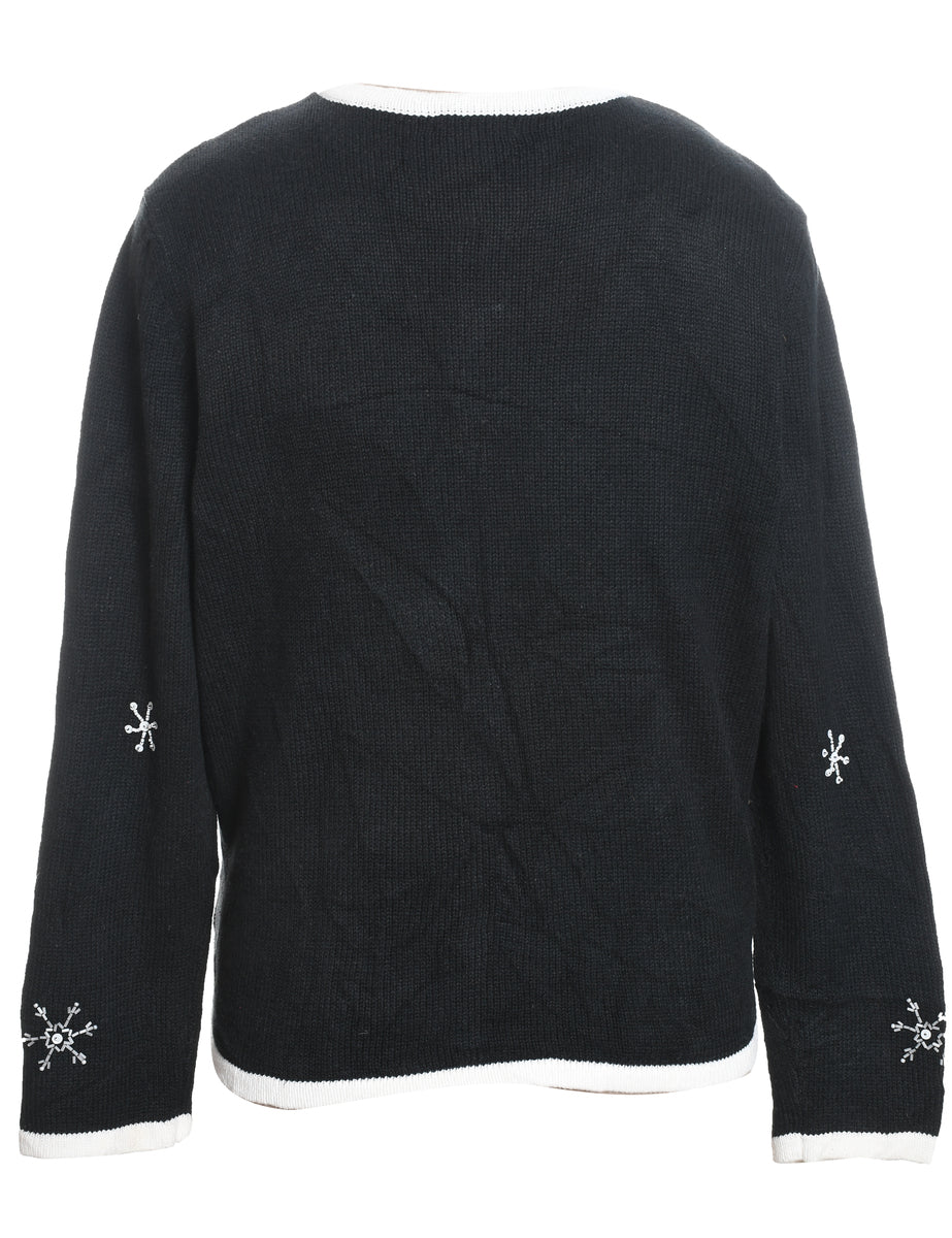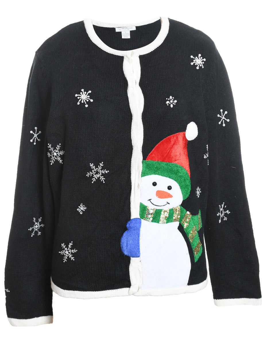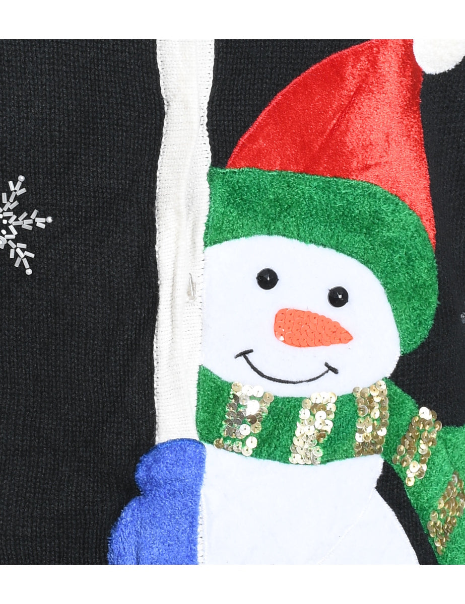 Black Appliqued Snowman Design Christmas Cardigan - L