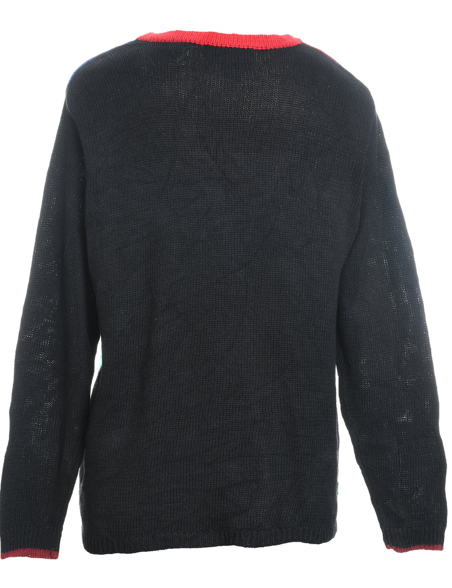 Festive print christmas cardigan. Comes in black with decorative buttons and a v-neck.