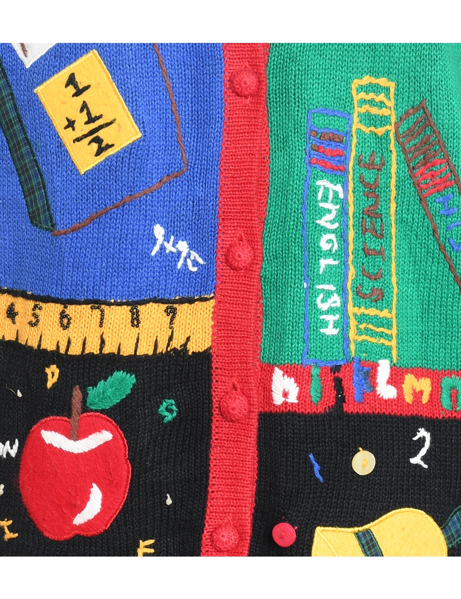 Festive Print Christmas Cardigan - M