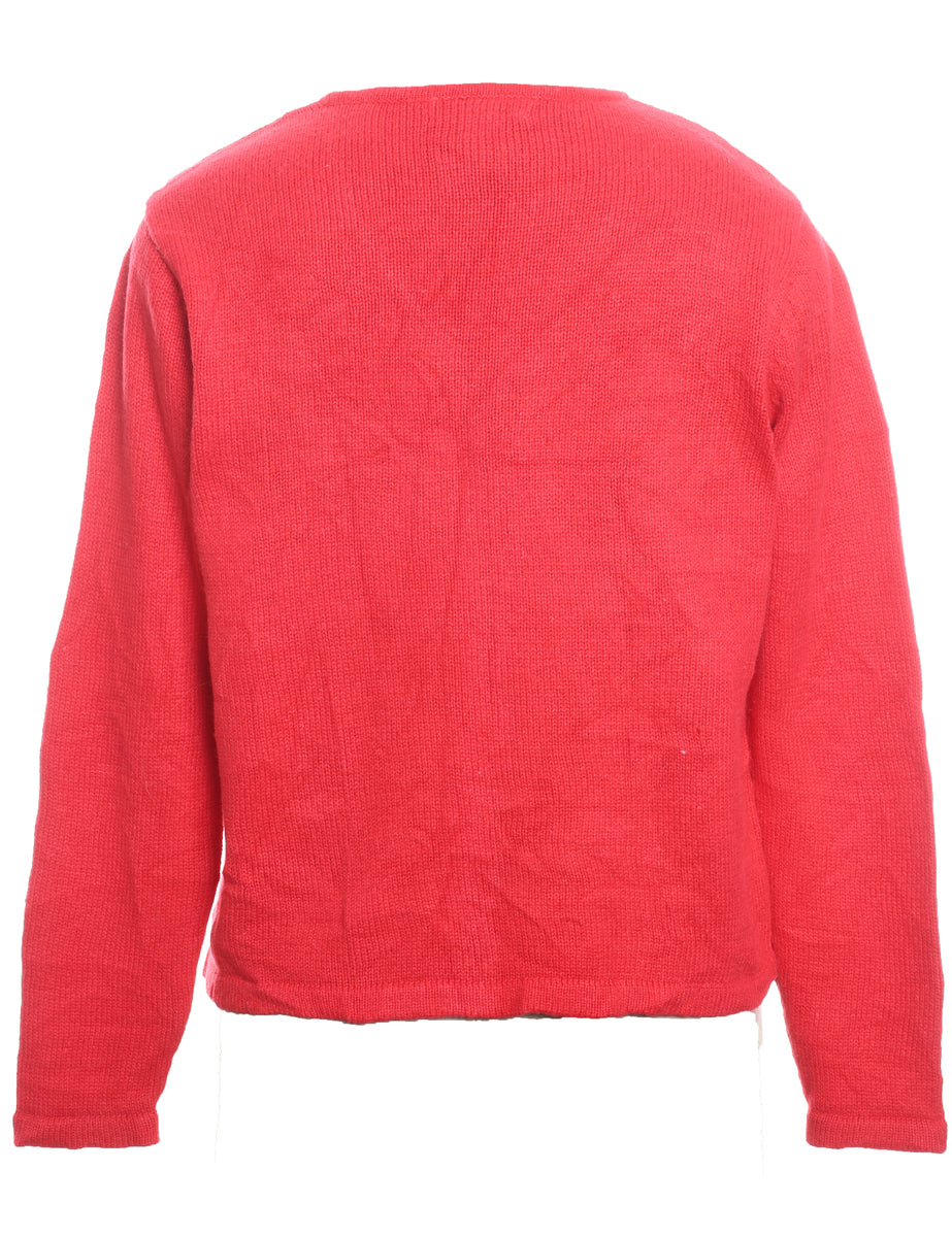 Red knit snowman design Christmas cardigan complete with a v-neck and an applique design.