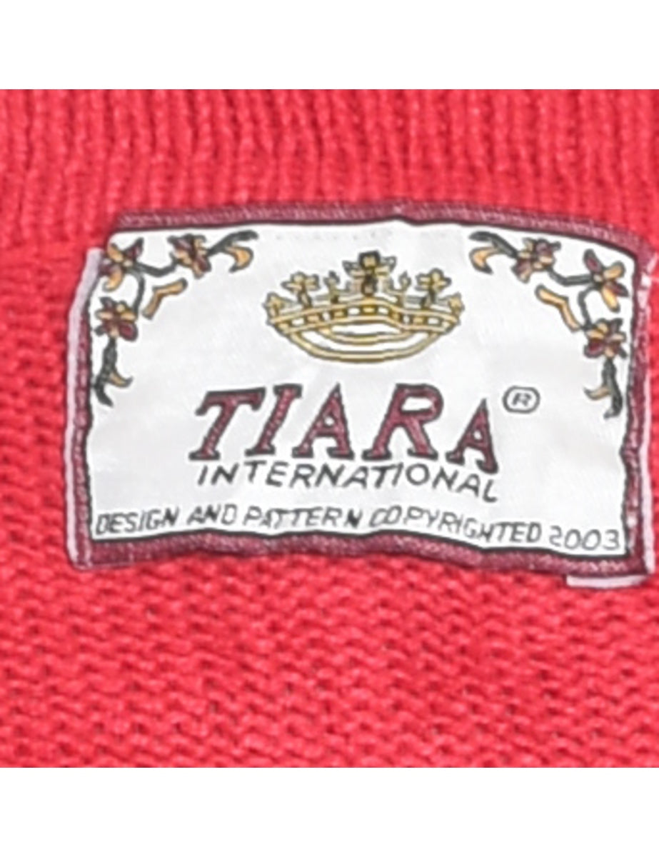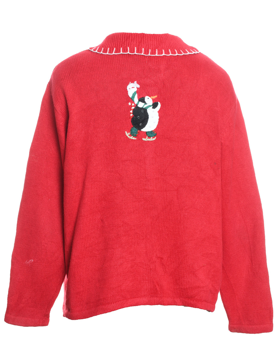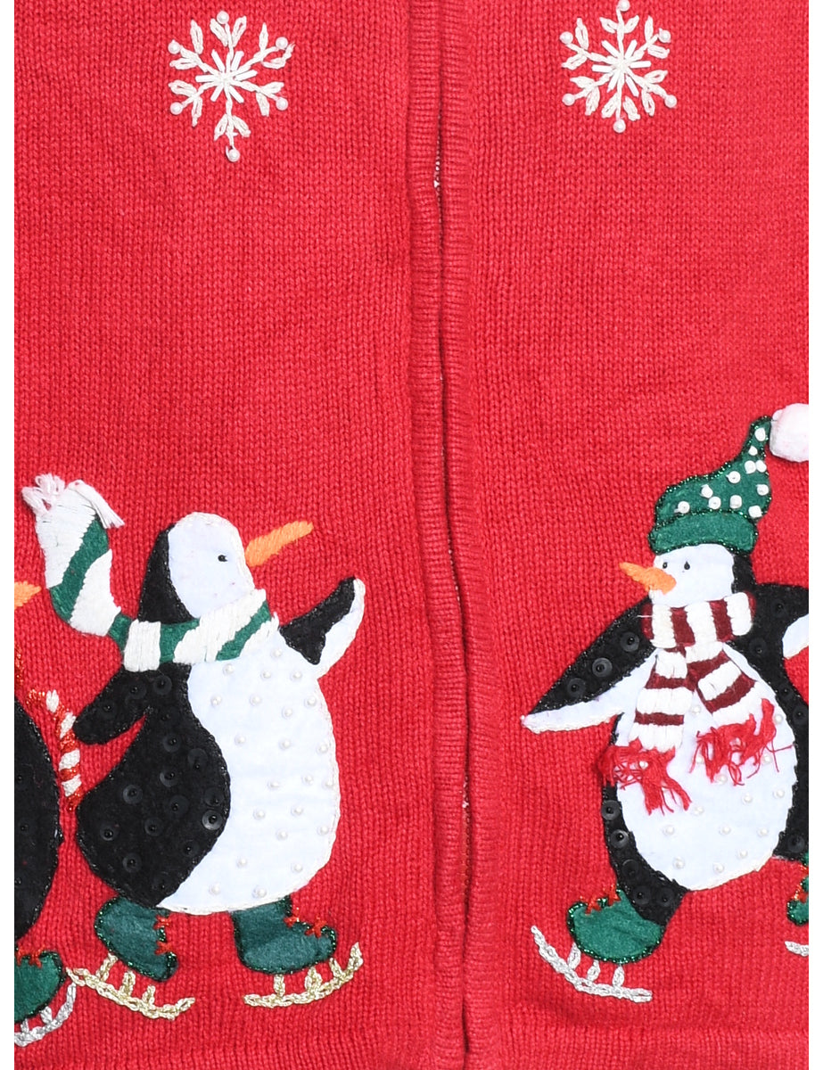Red Penguin Design Christmas Cardigan - L