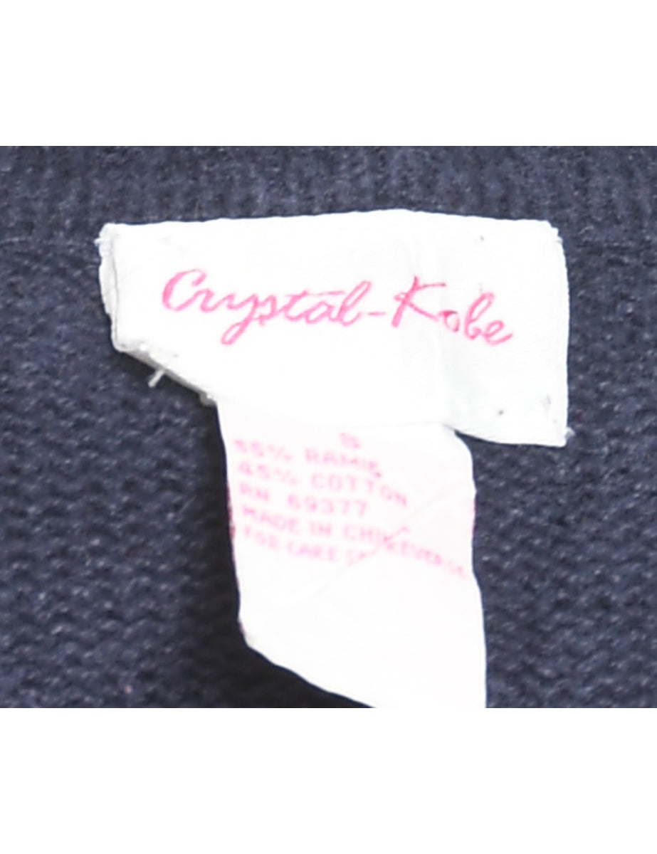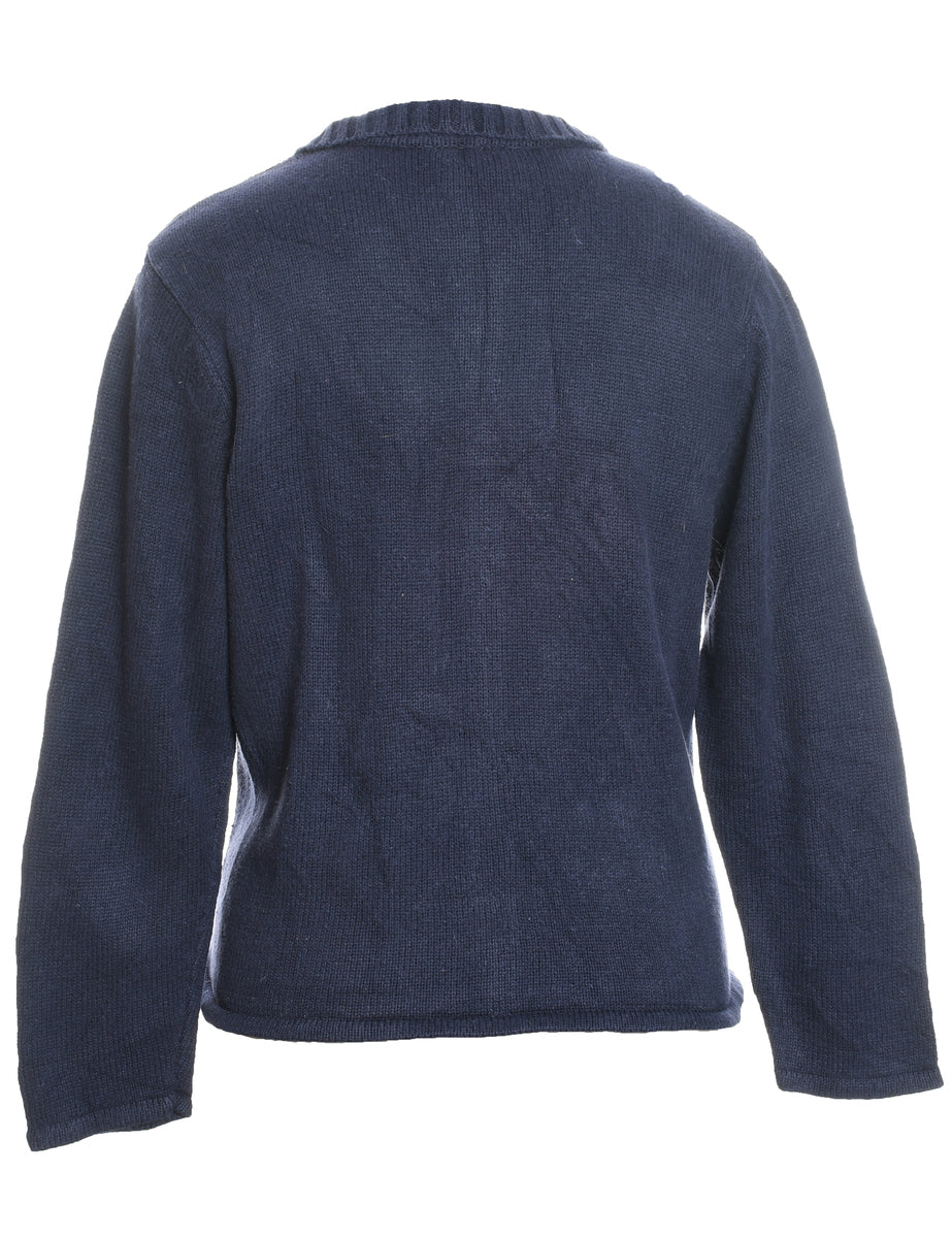 Snowfall Design Appliqued Navy Zip-Front Christmas Cardigan - S