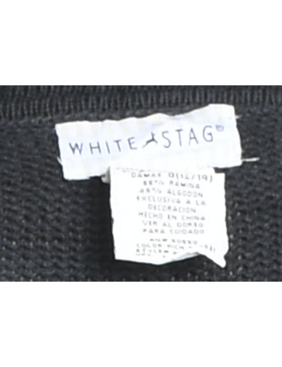 Snowfall design black embroidered zip-front Christmas cardigan complete with beading and a drop shoulder.