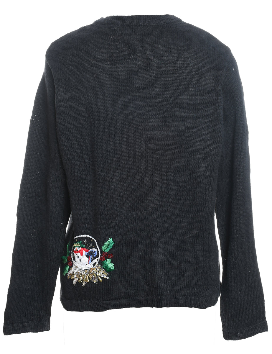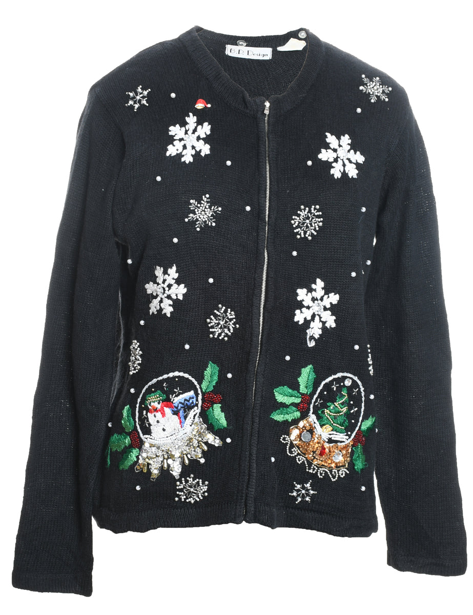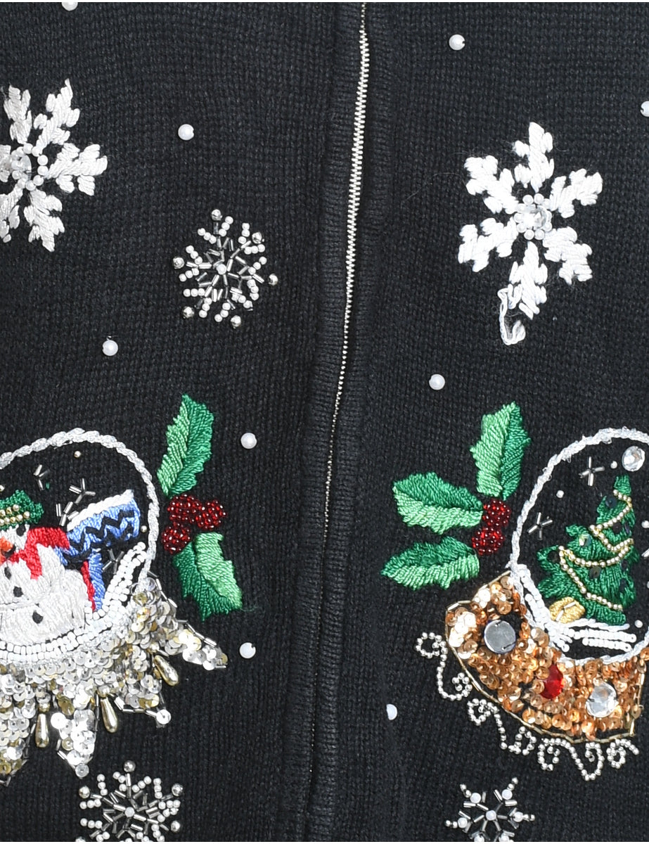 Snowfall design christmas cardigan in black with embroidery and beading.
