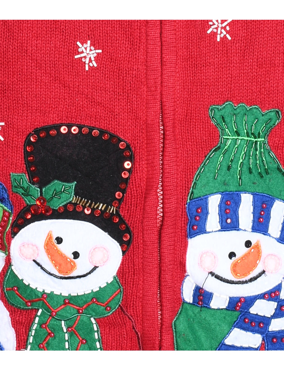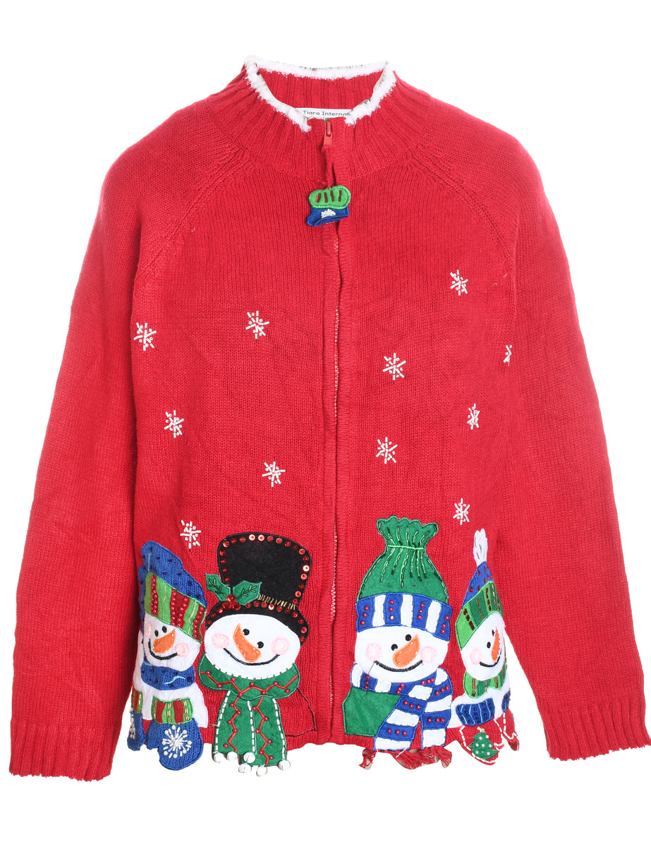 Snowman christmas cardigan. Comes in red with an applique design and beading.