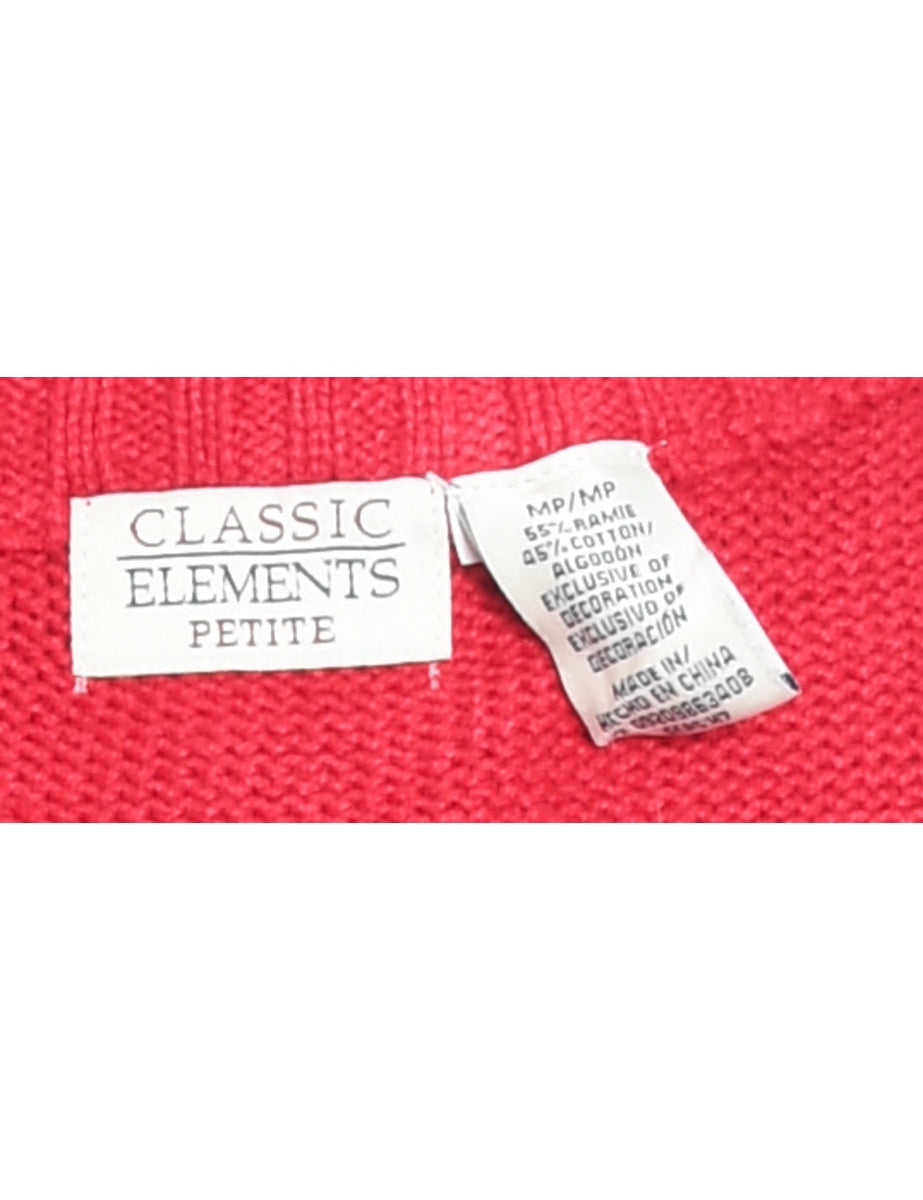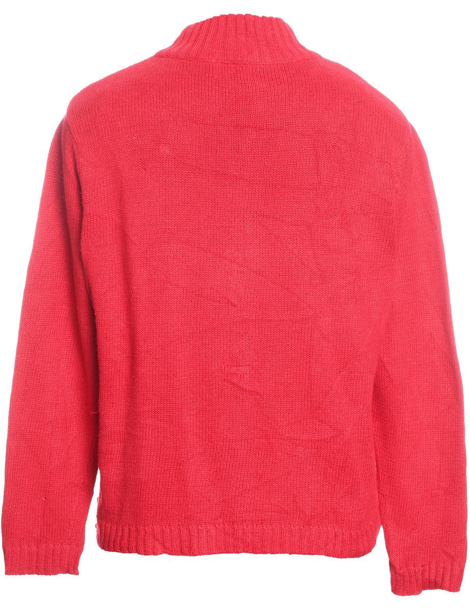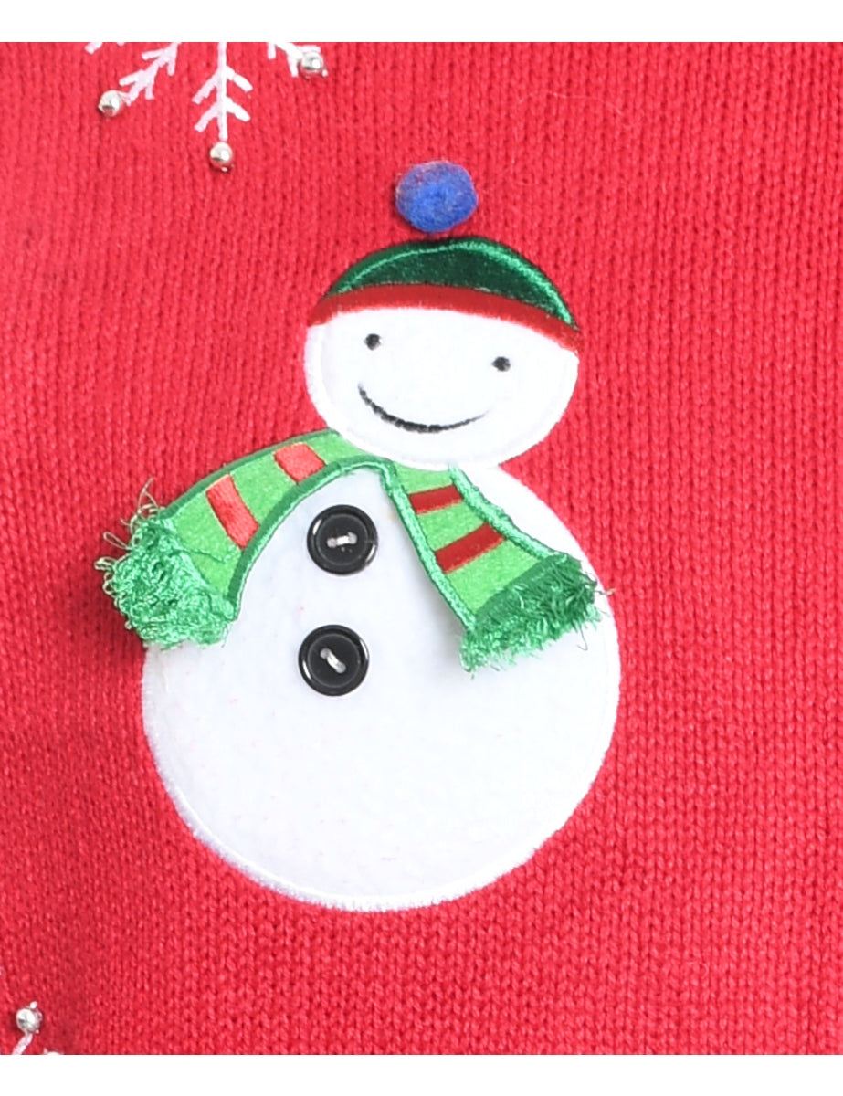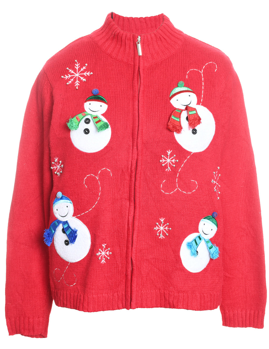 Snowman christmas cardigan in red with a turtleneck and an applique design.