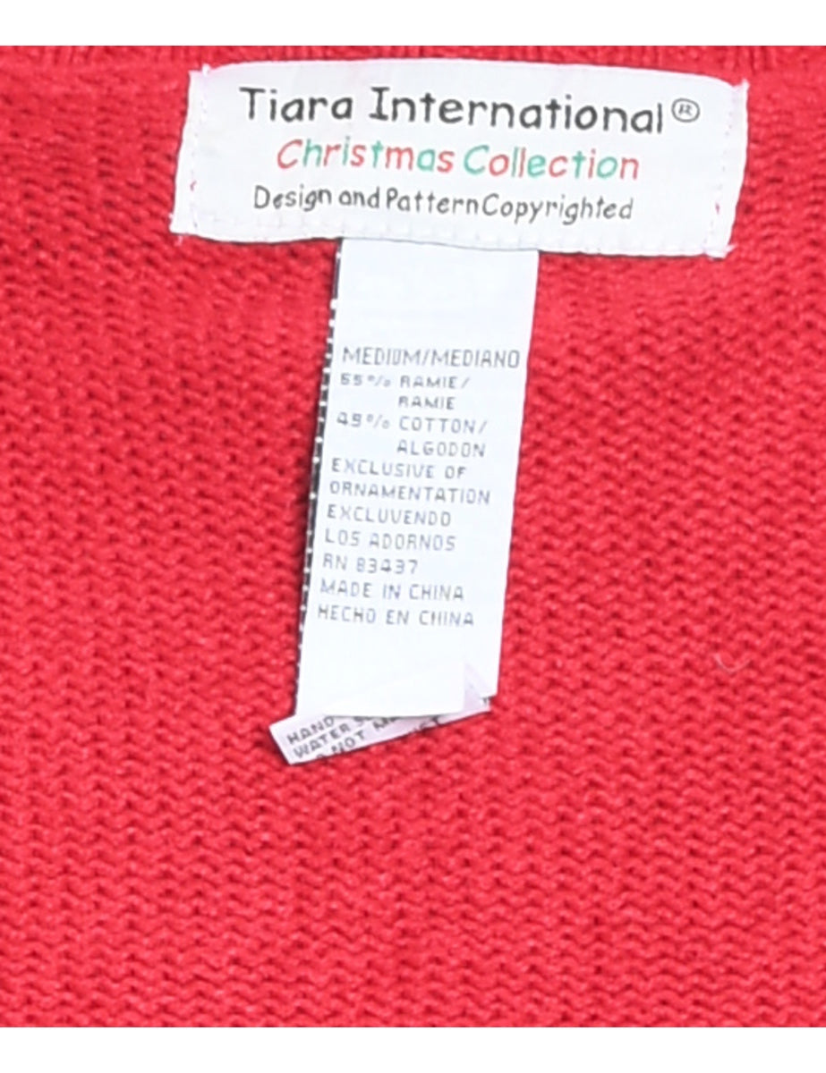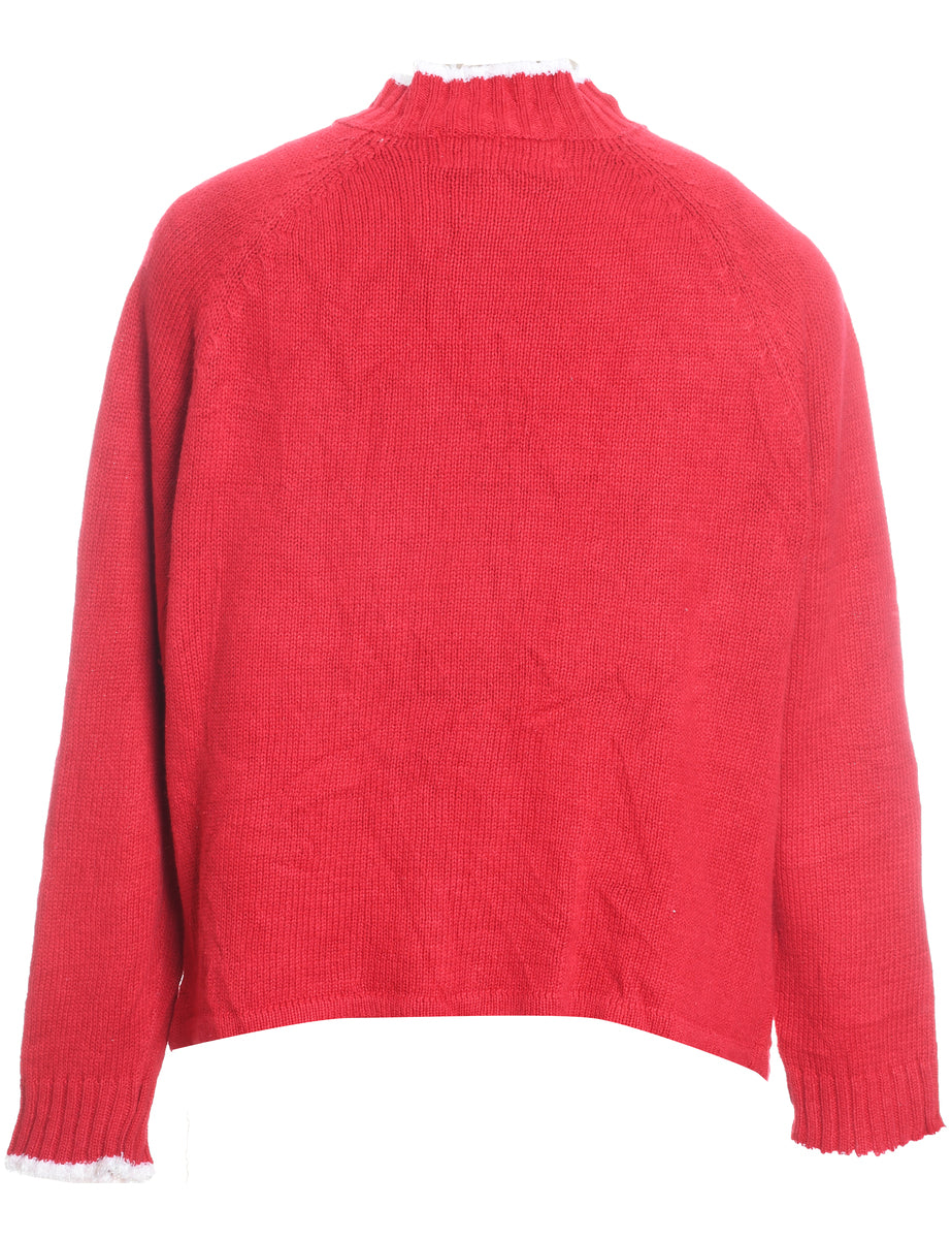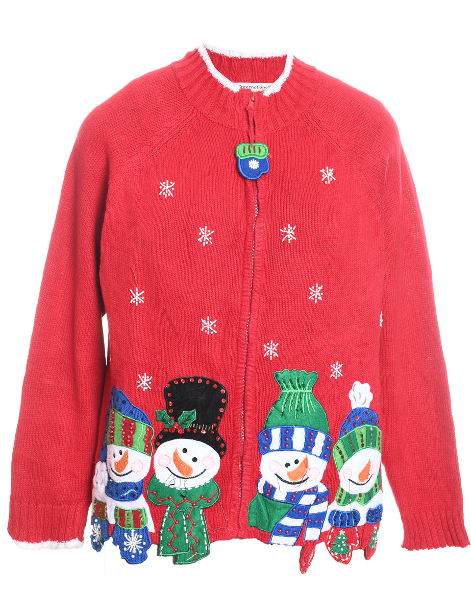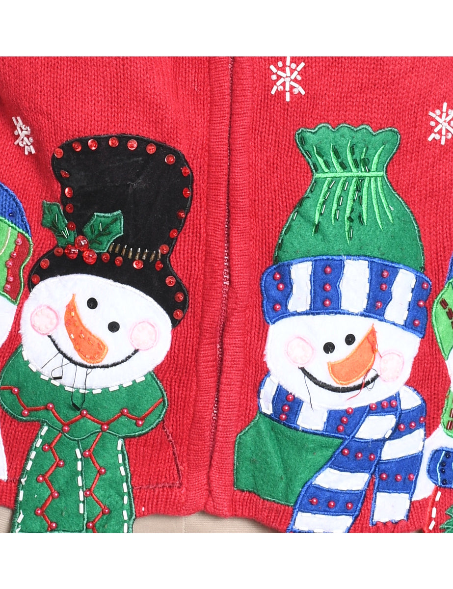 Snowman red christmas cardigan with beading and raglan sleeves.