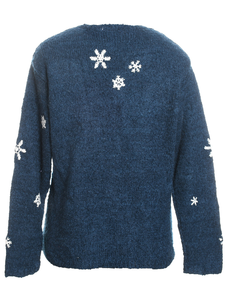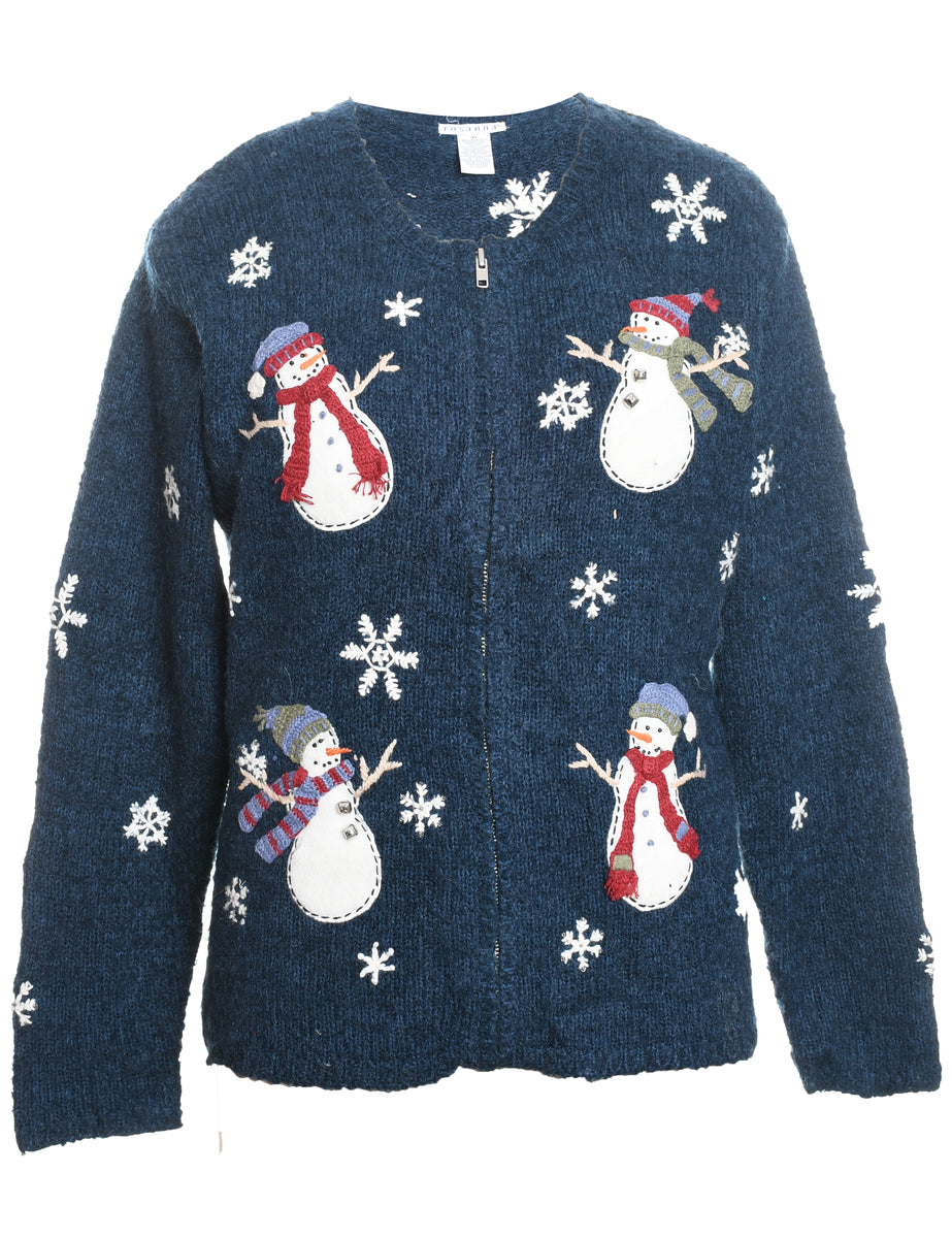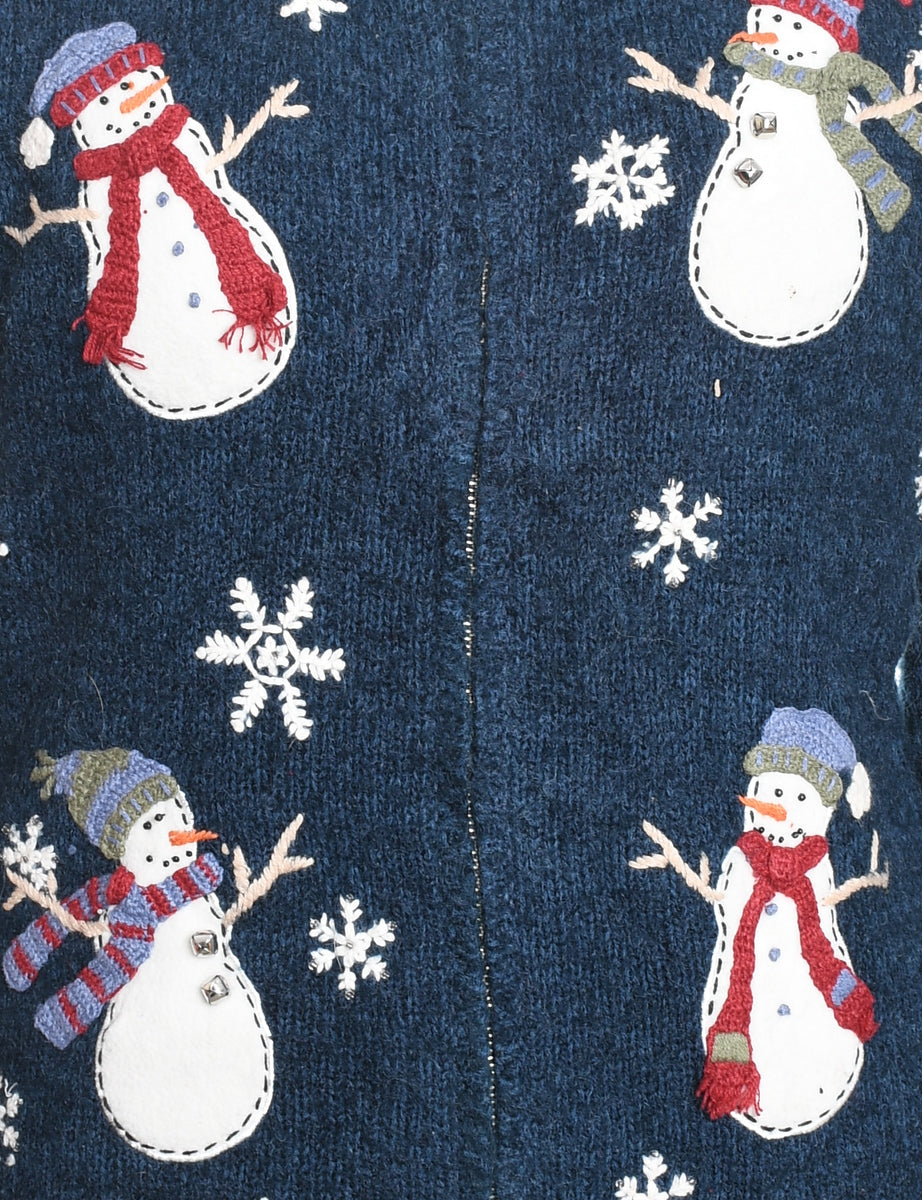 Snowman Design Navy Appliqued Christmas Cardigan - M