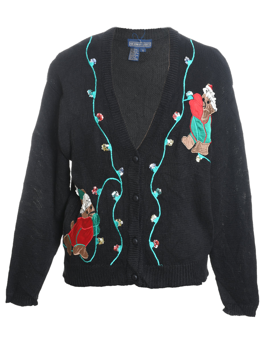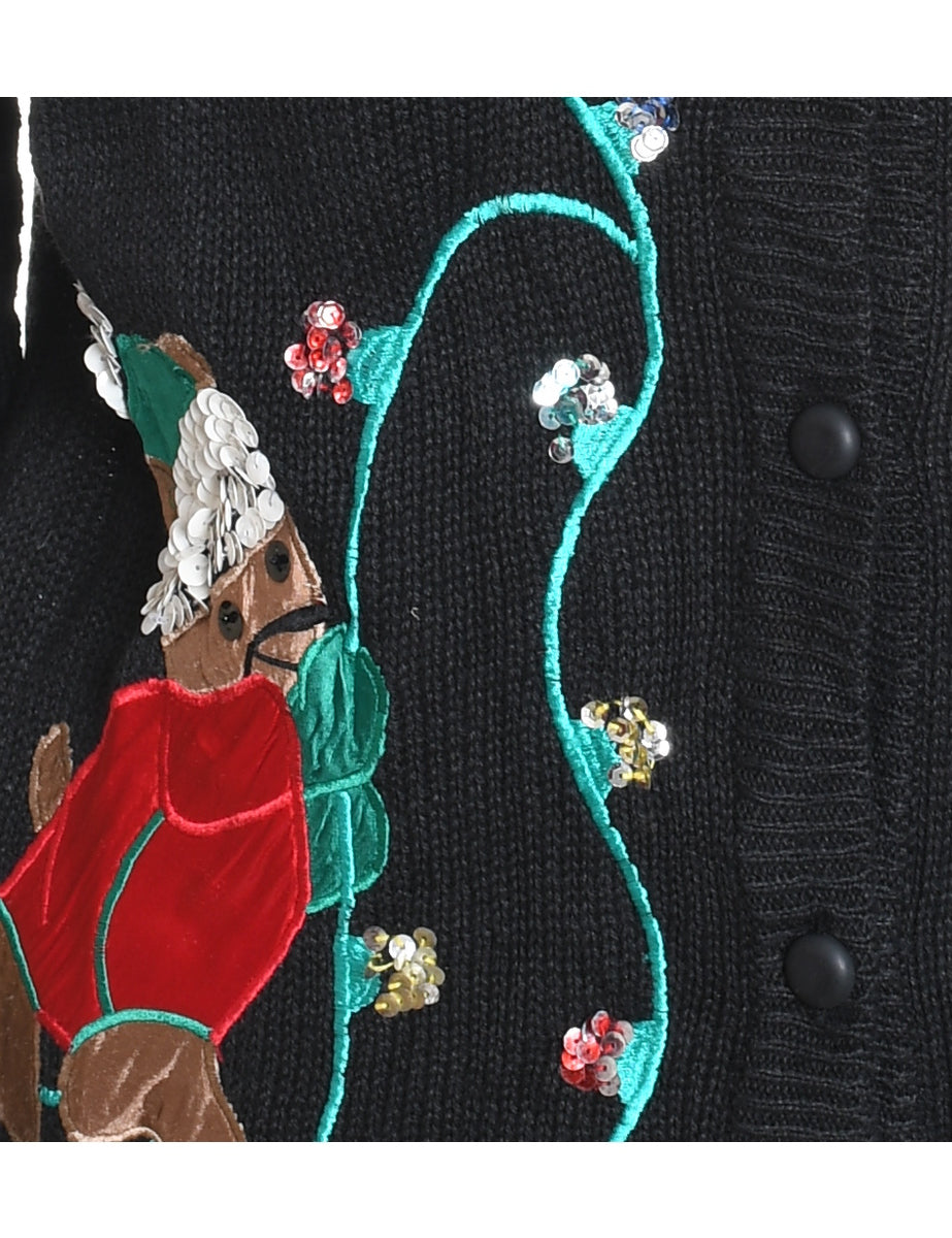 Teddy bear black embroidered Christmas cardigan complete with an appliqued design and sequins.