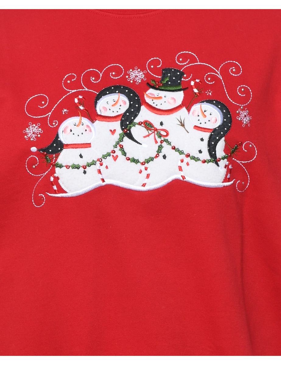 Snowman christmas sweatshirt in red with embroidery and beading.