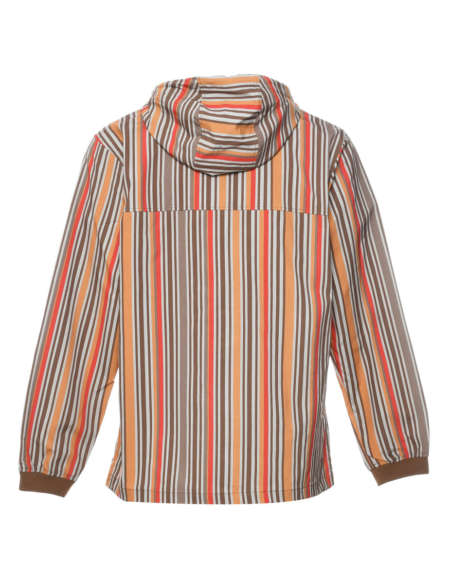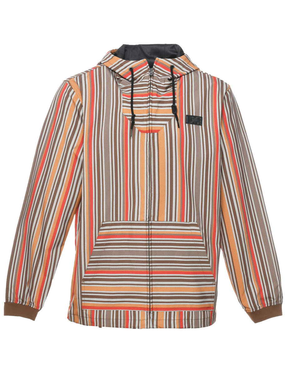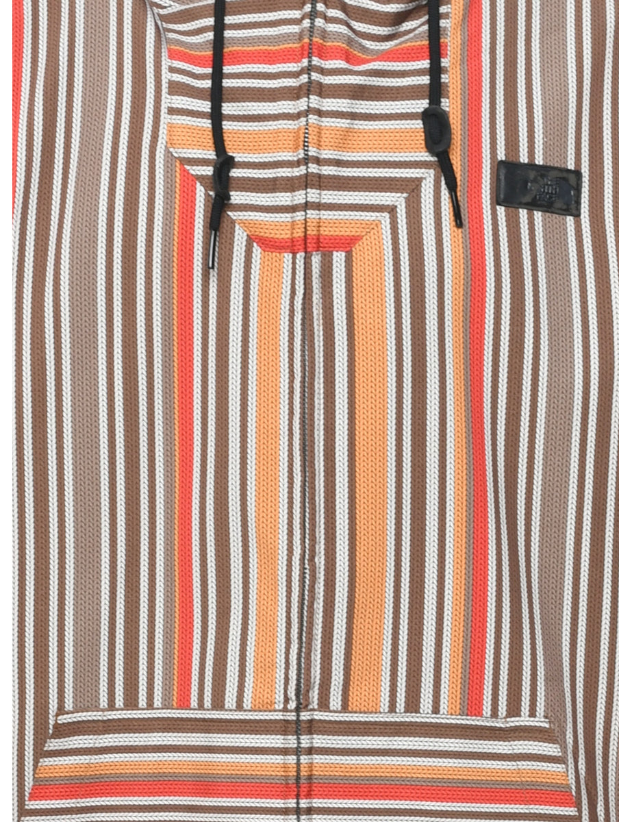The North Face striped jacket in multi-colour with a hood and multiple pockets.