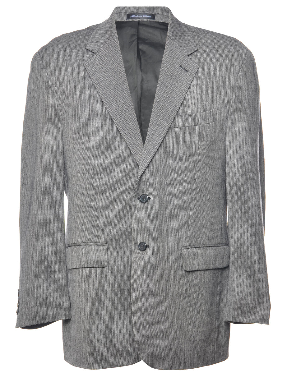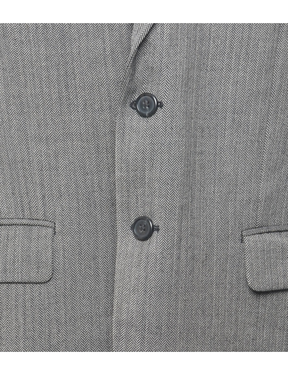 Herringbone tweed blazer in grey with multiple pockets and built in shoulder pads.