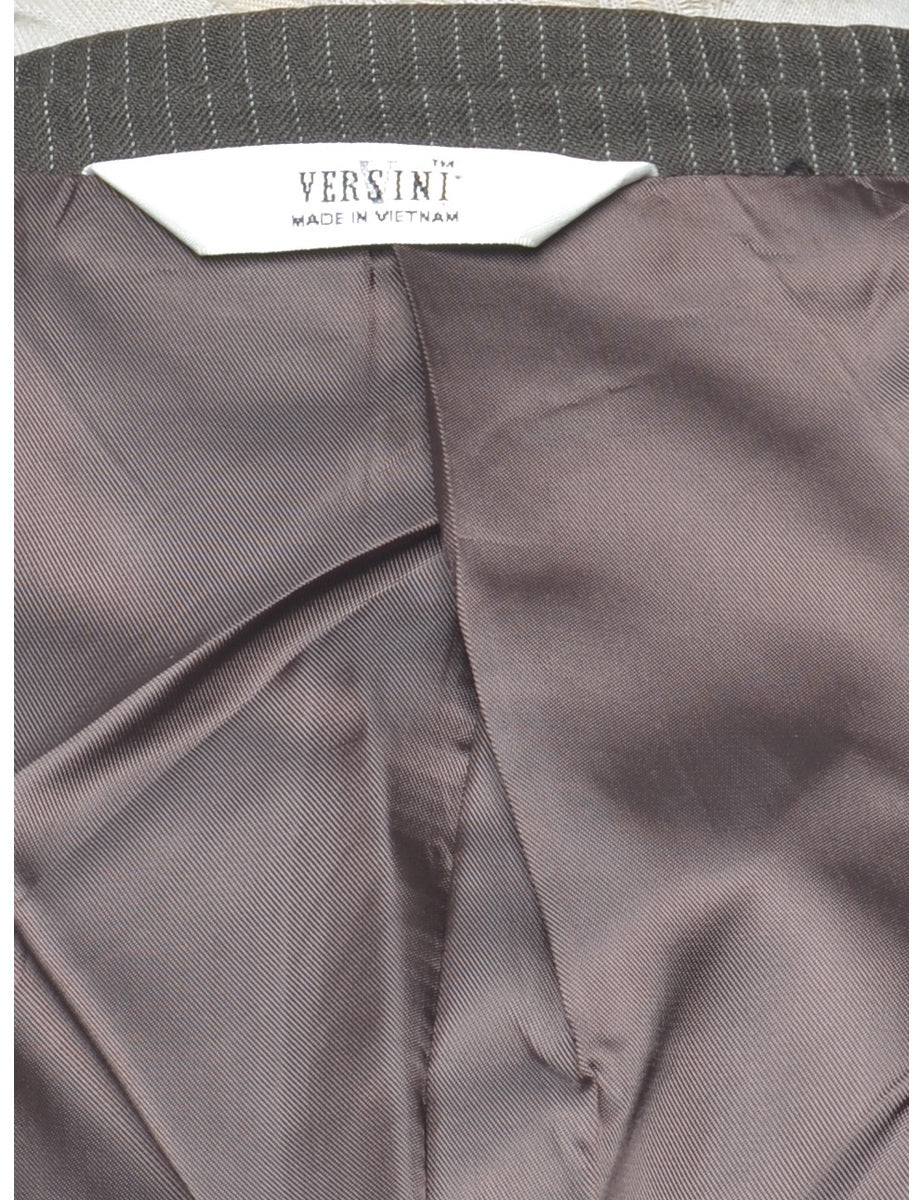Pinstriped blazer in dark brown with full lining and built in shoulder pads.