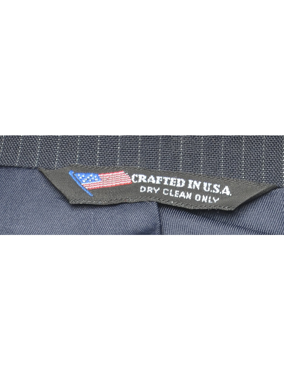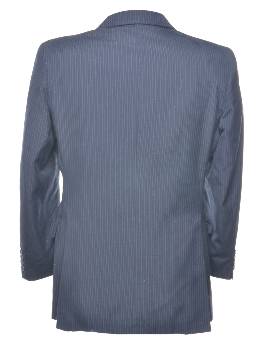 Pinstriped navy blazer complete with full lining and built-in shoulder pads.