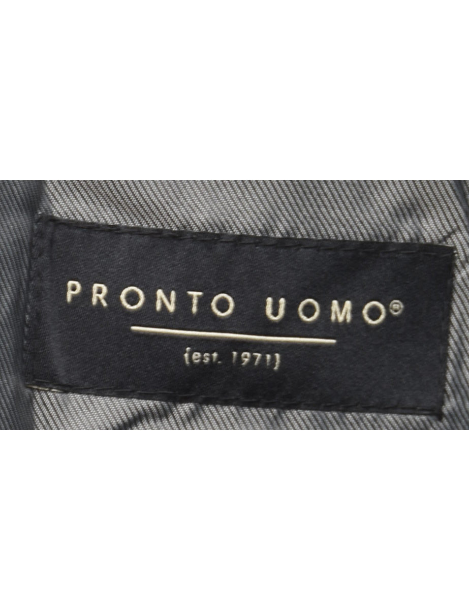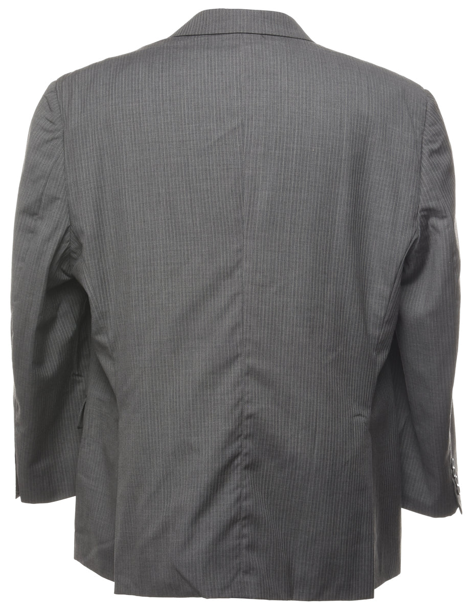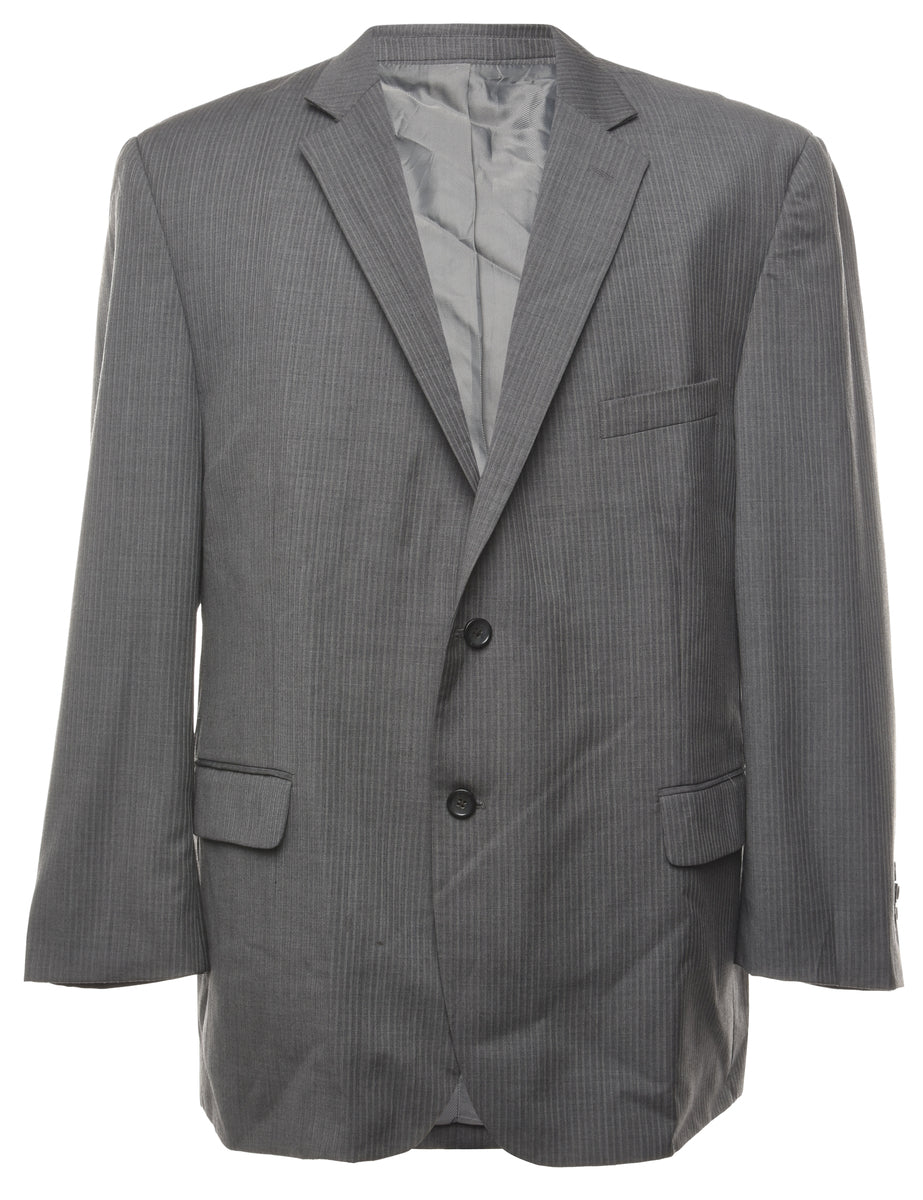 Pinstriped blazer. Comes in grey with a revere front and full lining.