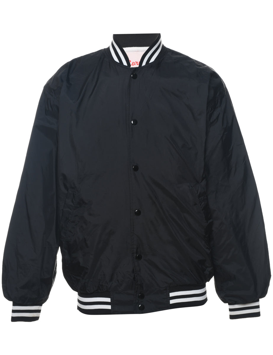 Vintage 1980s Black Classic Zip-Front Bomber Jacket - S