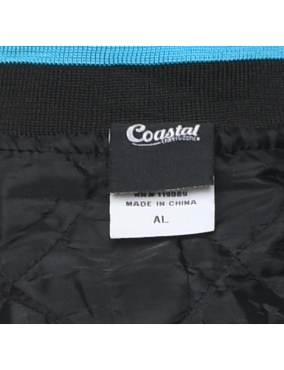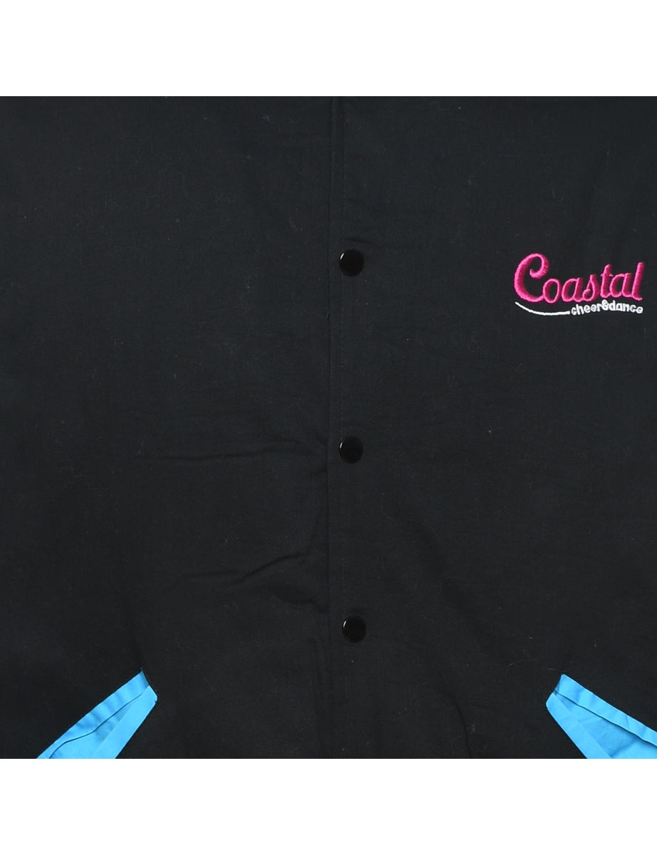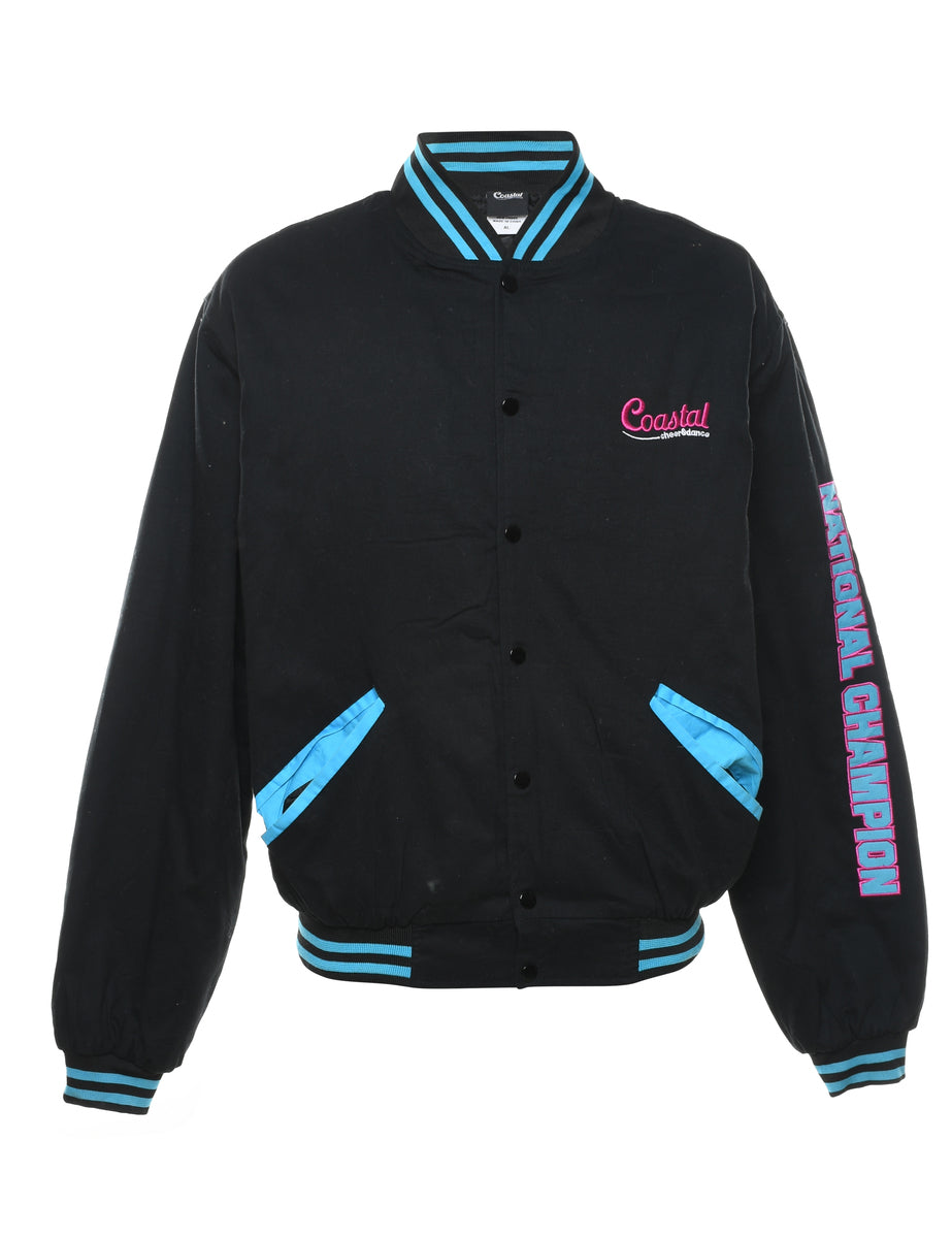 Embroidered black Battle Capital design bomber jacket complete with quilted lining.
