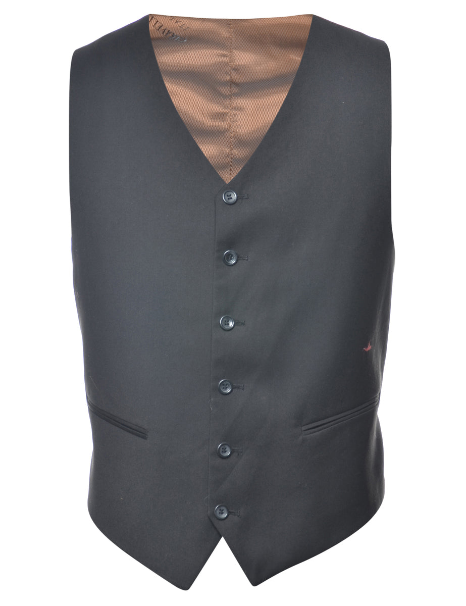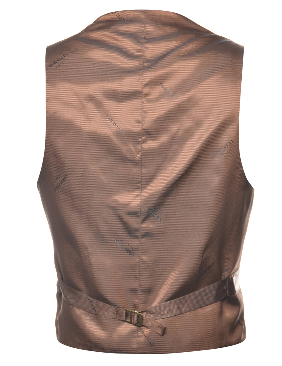 Button front waistcoat. Comes in black & brown with back tie and full lining.