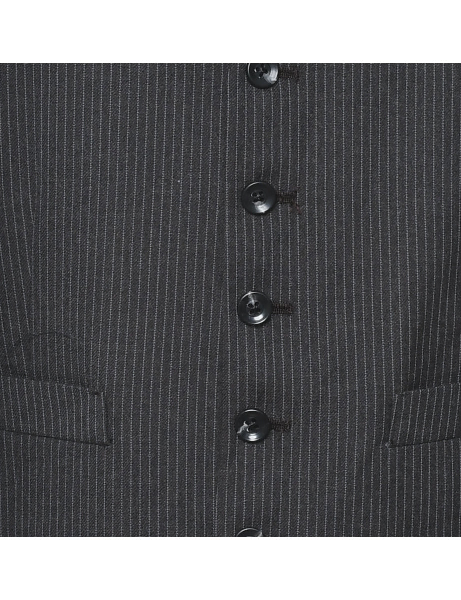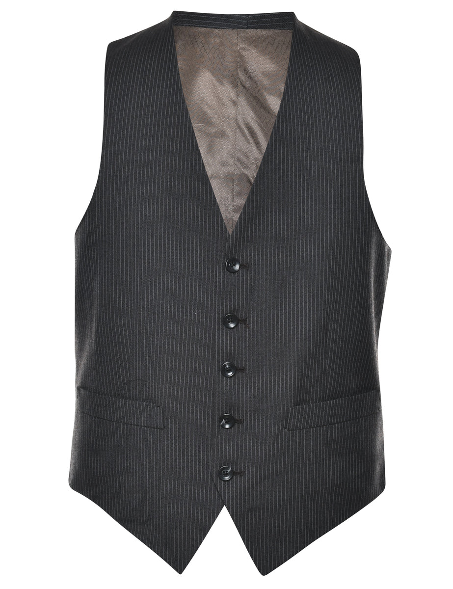 Pinstriped waistcoat in dark brown with full lining.