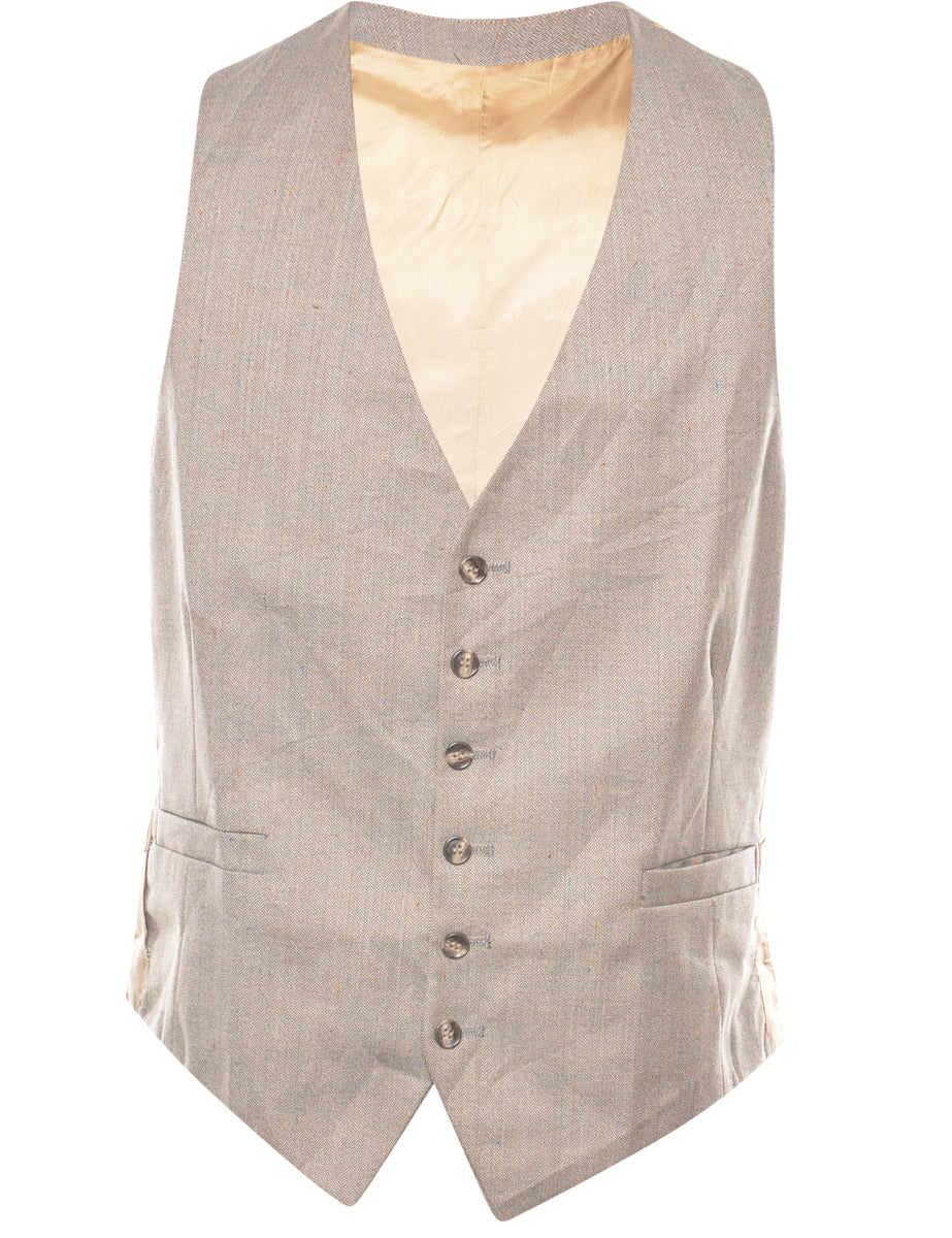 Vintage Herringbone Tweed Waistcoat - L