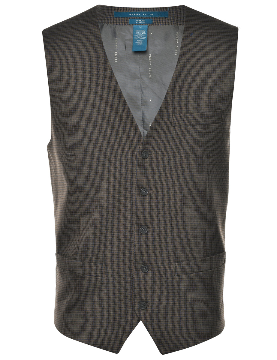 Perry Ellis dogtooth waistcoat. Comes in brown with full lining.