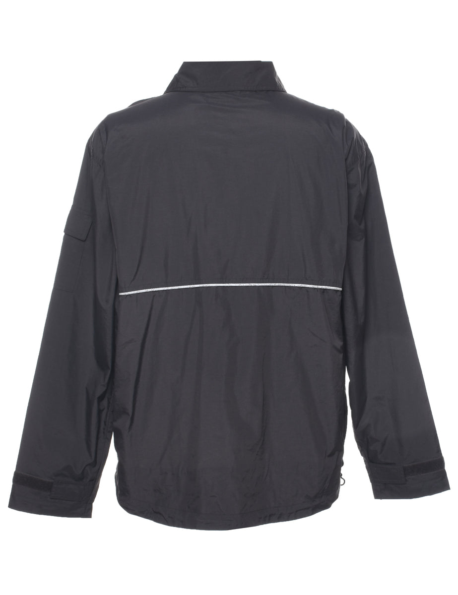 Zip front nylon jacket. Comes in grey with mesh lining and multiple pockets.
