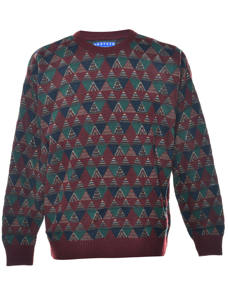Geometric pattern jumper comes in multi-colour with a crew neck.