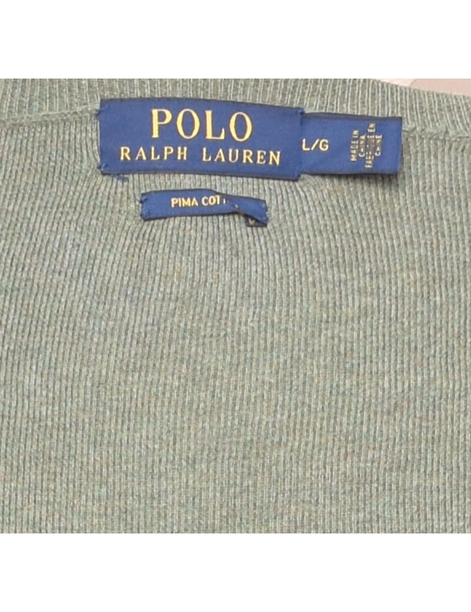 Jumper in olive green with a v-neck. From the brand Ralph Lauren.