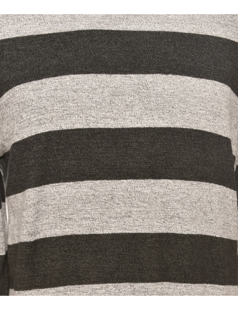Long-sleeved striped knit jumper in grey & black with a round neck.