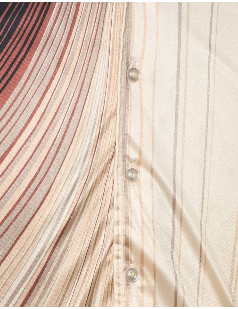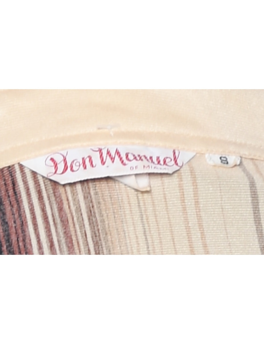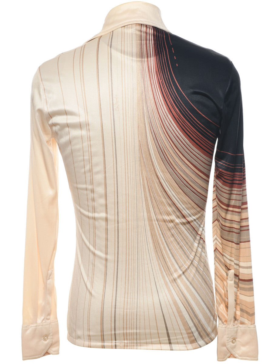 Vintage 1970s Striped Off-White & Brown Shirt - S