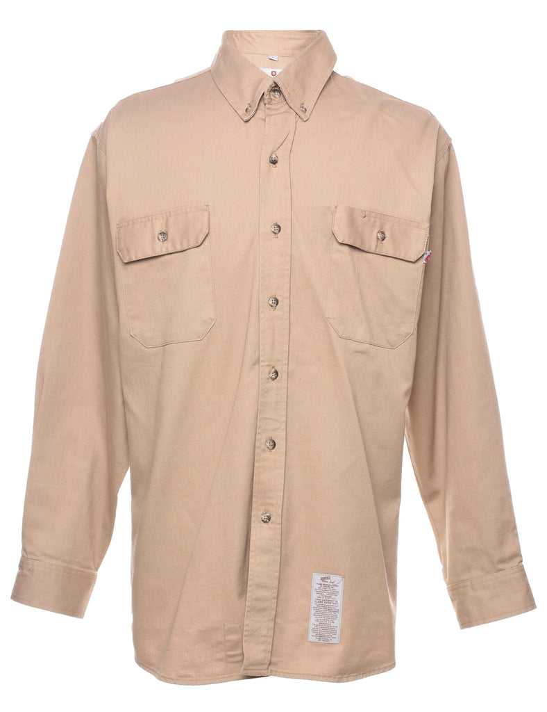 Long sleeved workwear shirt. Comes in beige with flap pockets.