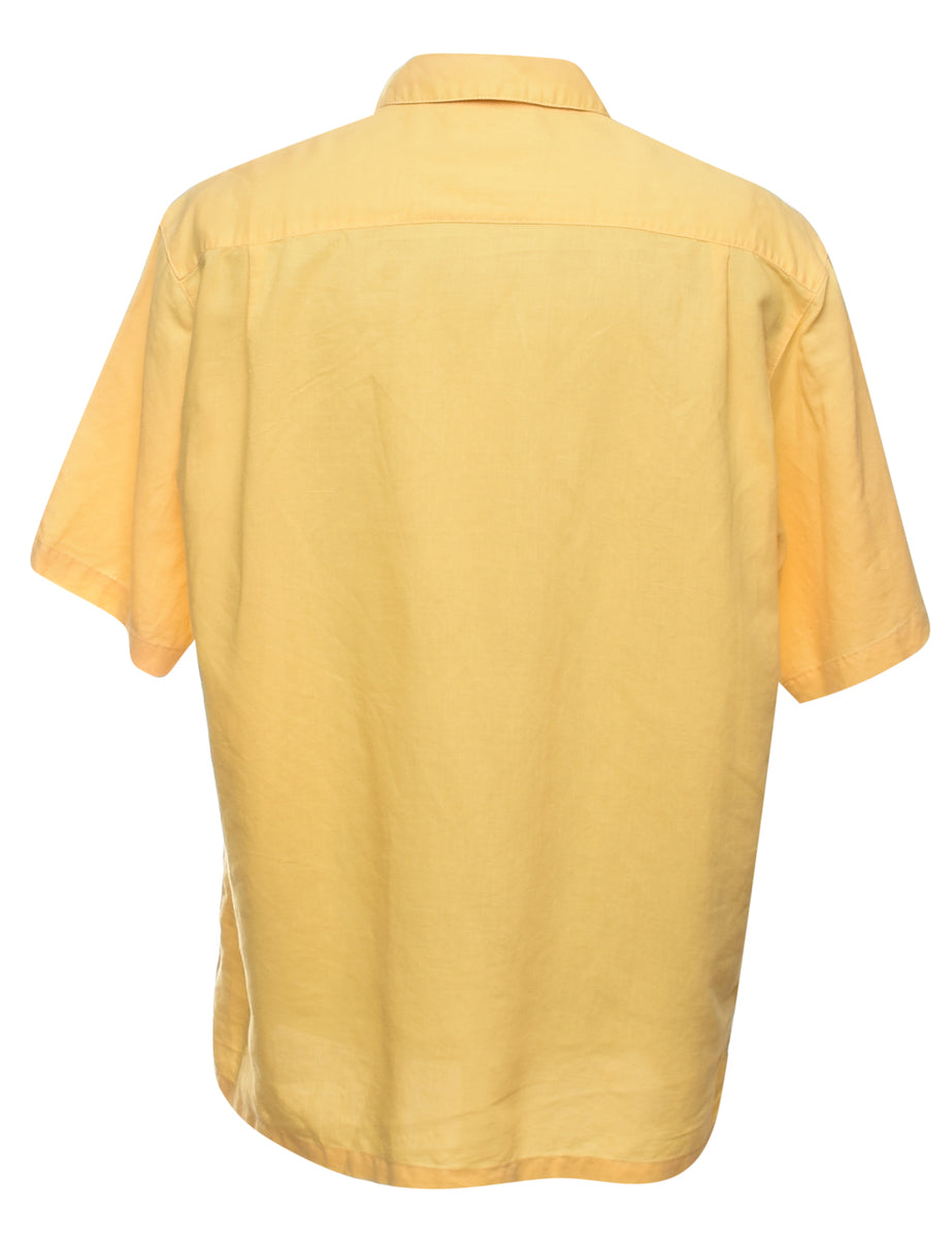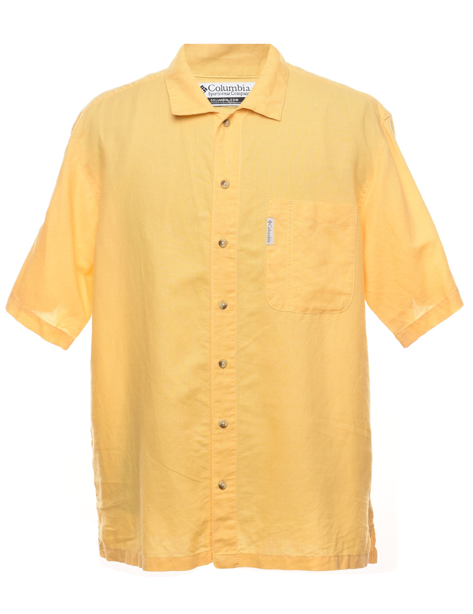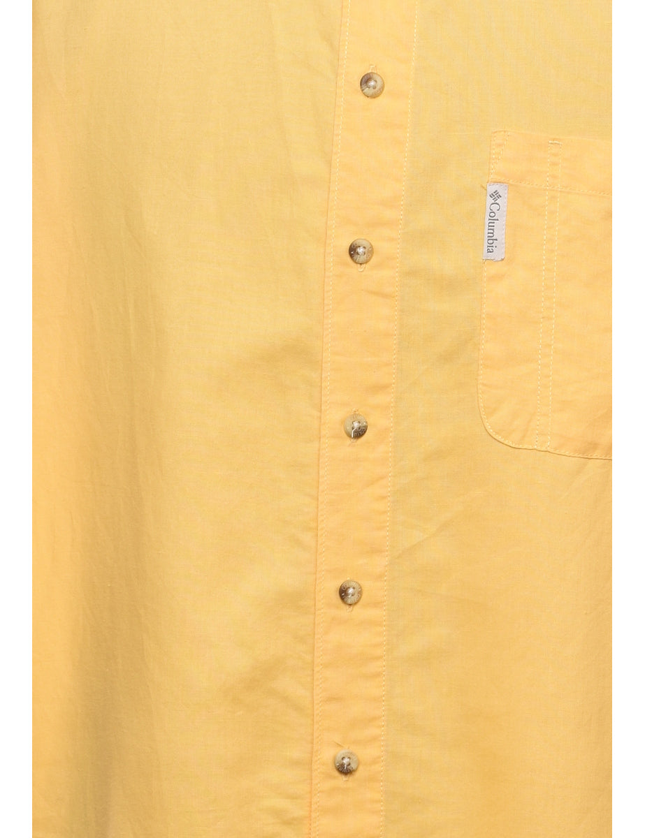 Short sleeve short sleeved shirt. Columbia in pale yellow with one pocket.