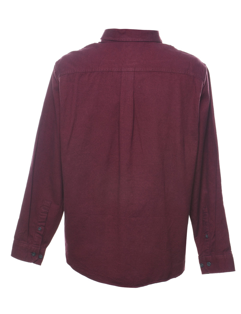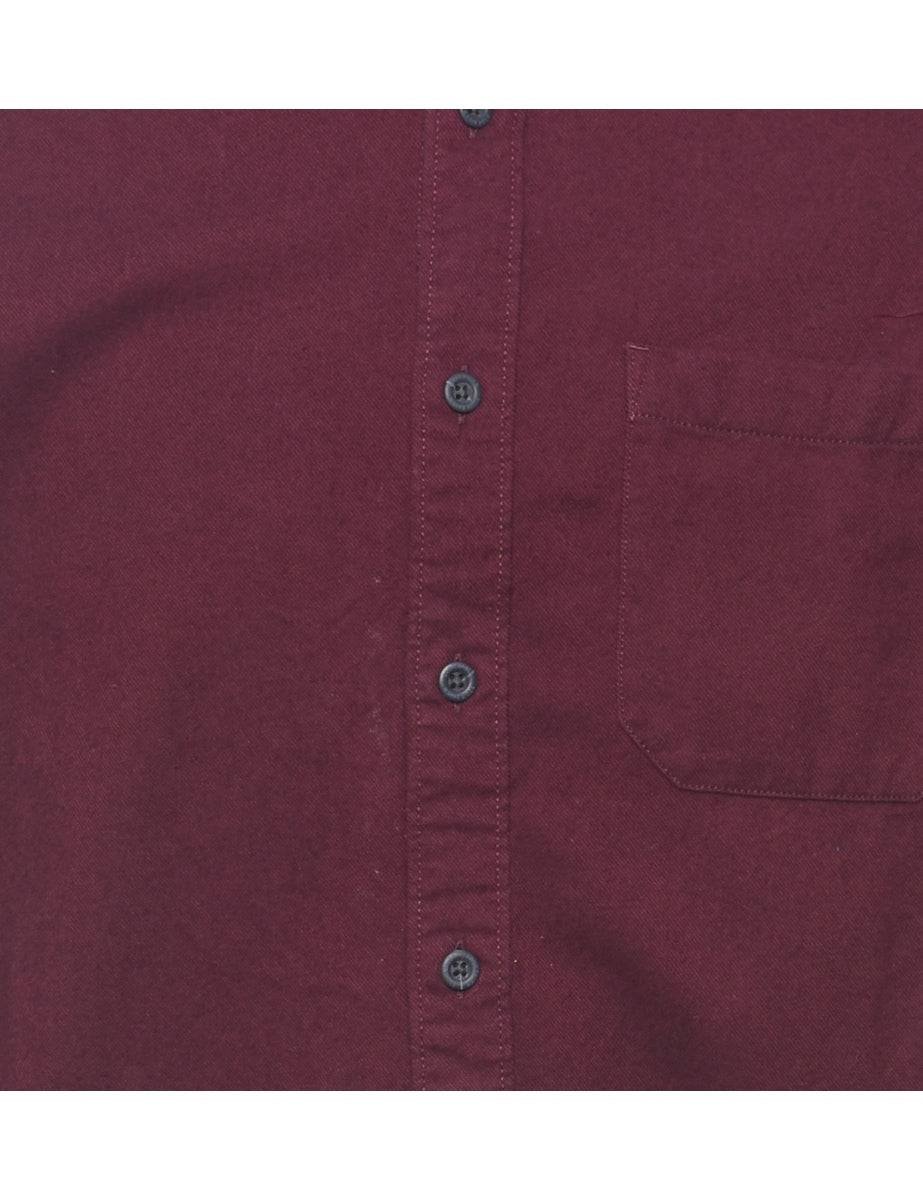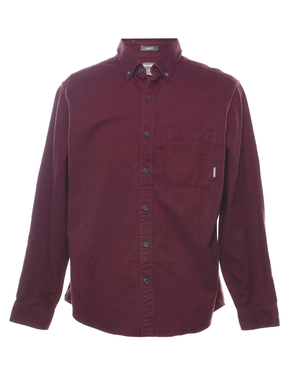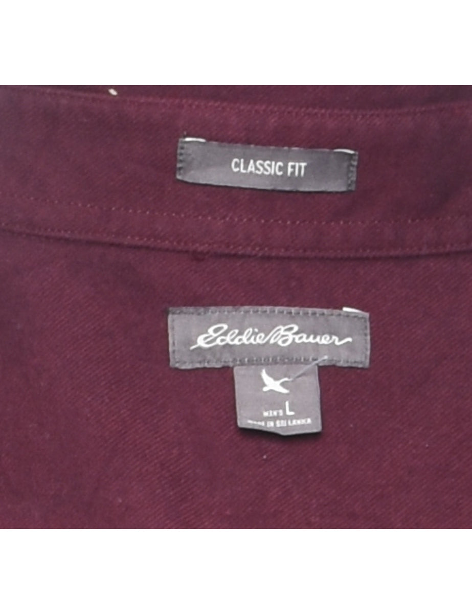 Long sleeved shirt in maroon with one pocket. From the brand Eddie Bauer.