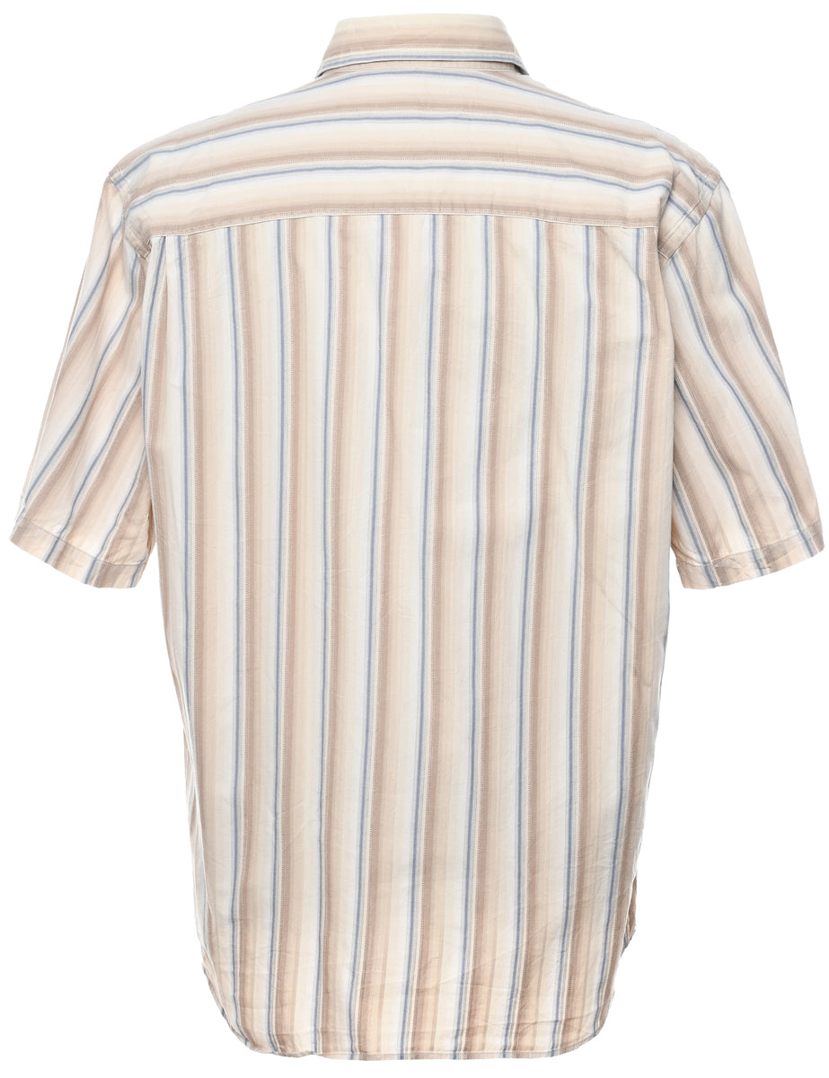 Striped light brown Pierre Cardin shirt with one pocket.