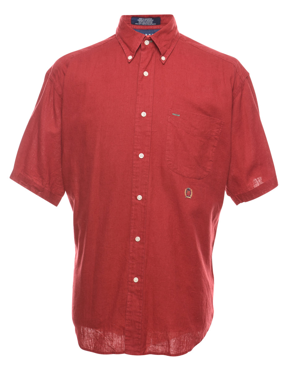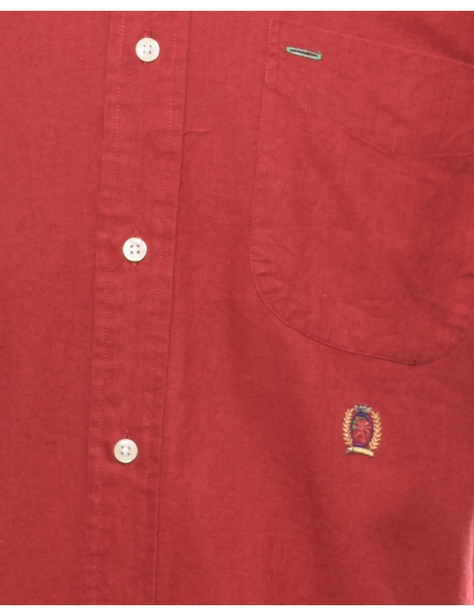 Vintage Tommy Hilfiger Maroon Short-Sleeve Shirt - M