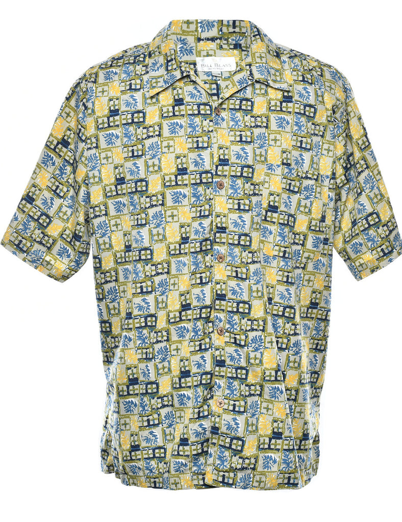Bill Blass Multi-Colour Leaf Print Hawaiian Shirt - L