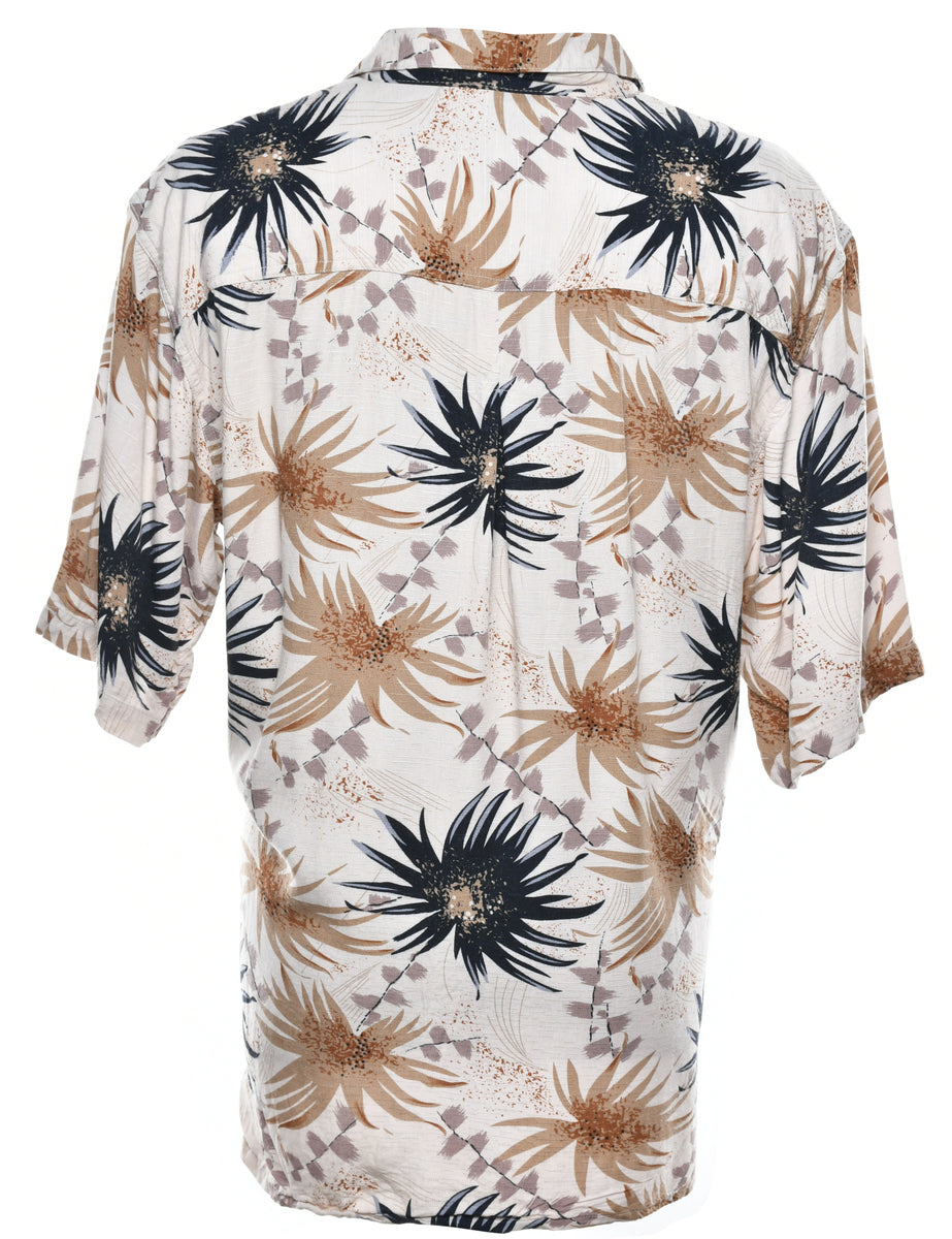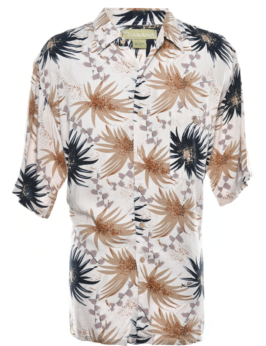 Black & Light Brown Leaf Print Hawaiian Shirt - XL