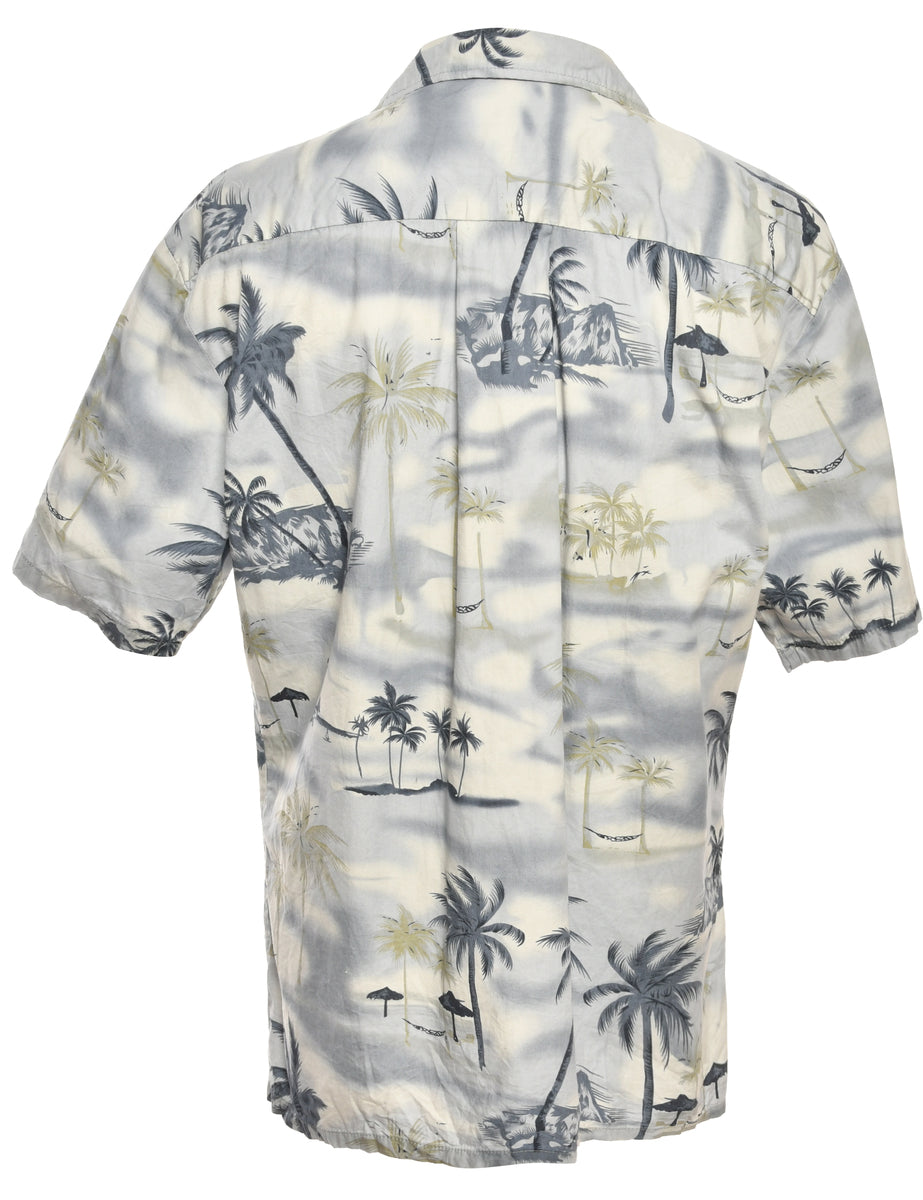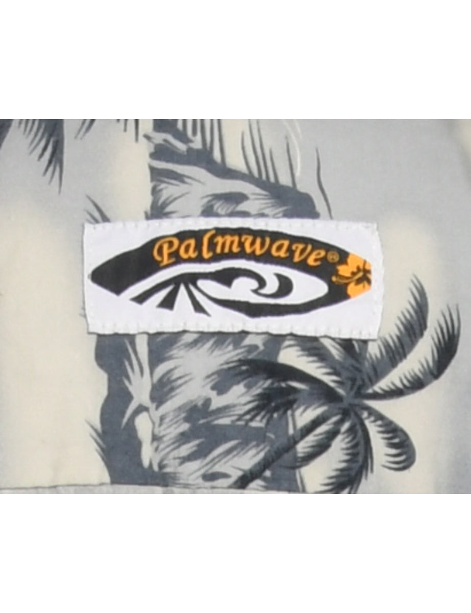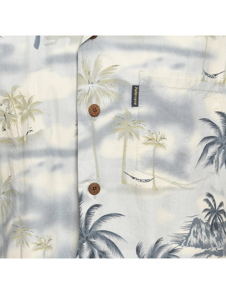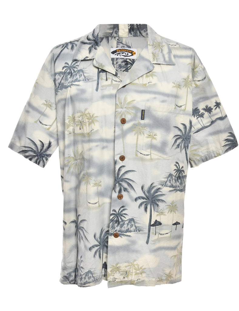 Palm Print Light Blue & Grey Hawaiian Shirt - M