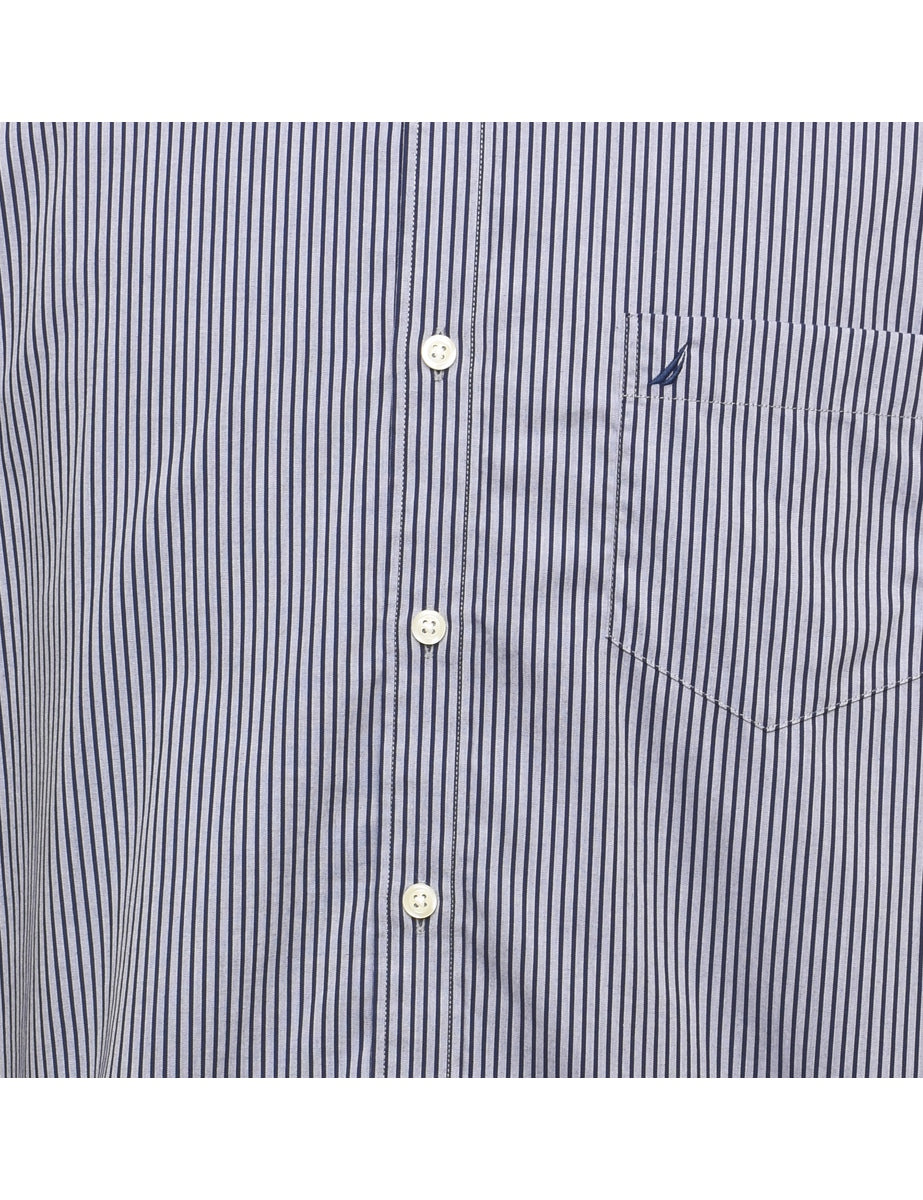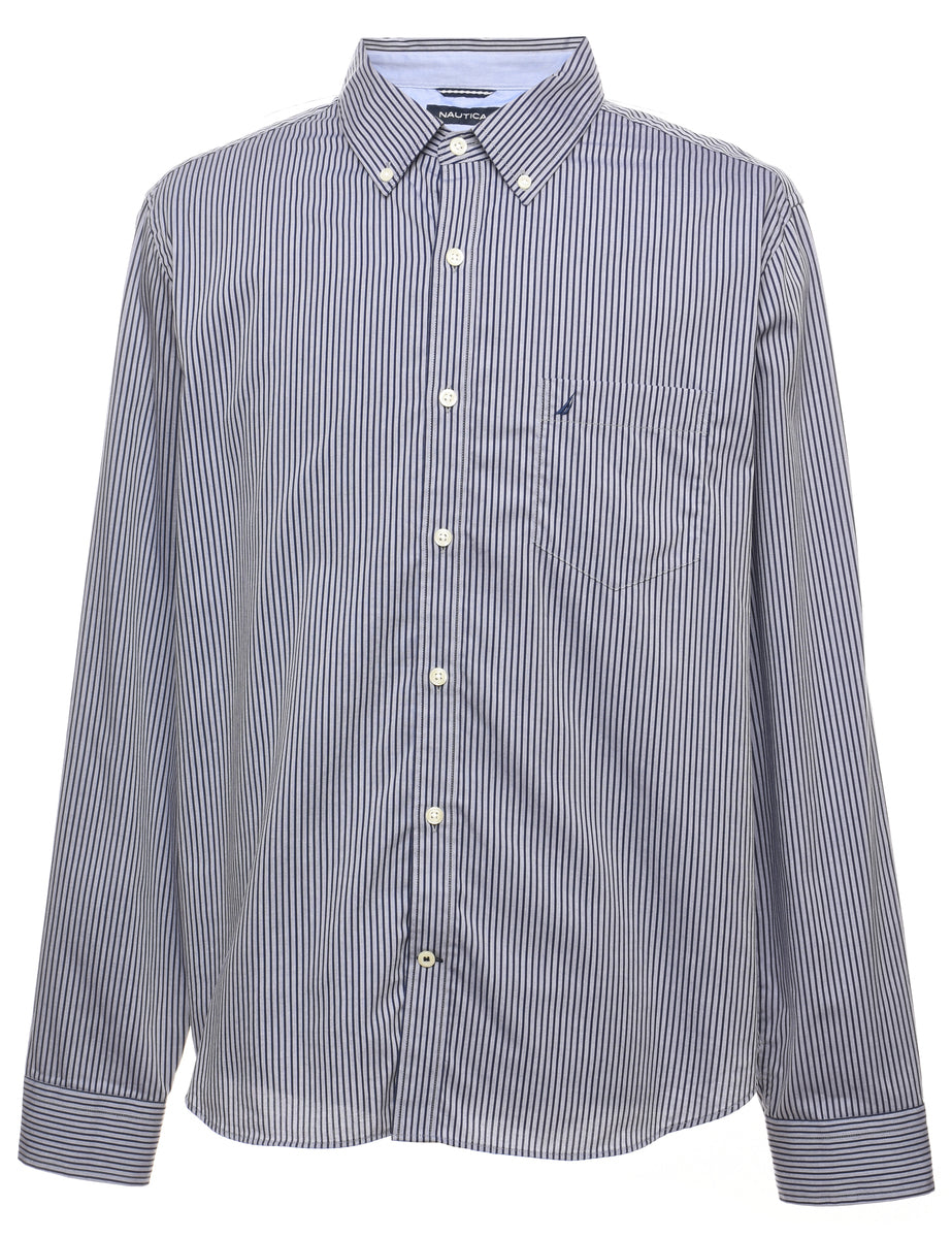 Vintage Nautica Striped Light Blue & Black Shirt - XL