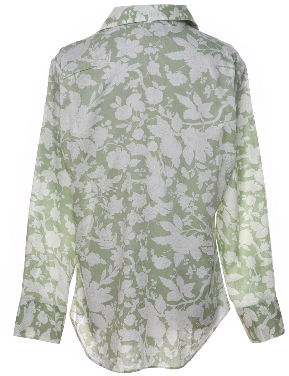Floral shirt in green & white with one pocket. From the 1970s.