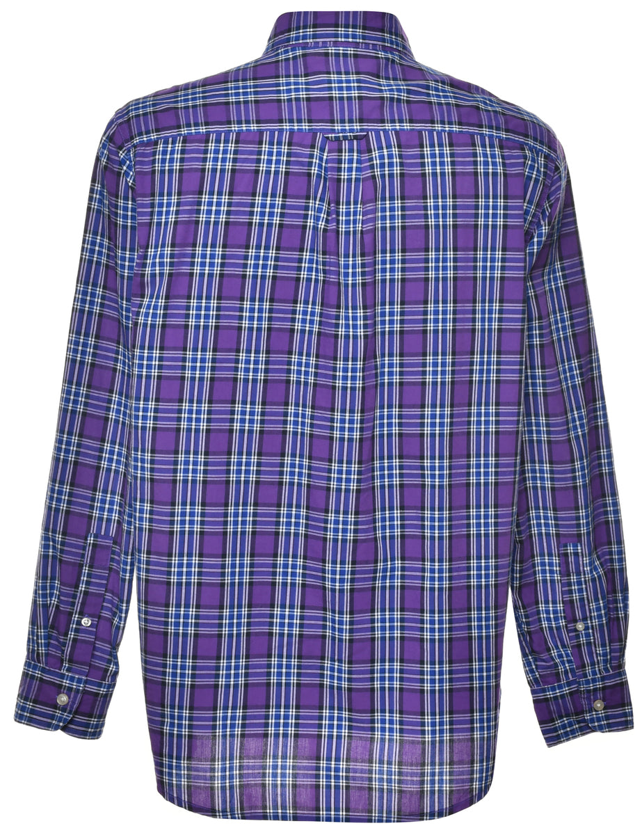 Chaps checked shirt in purple with a classic collar.