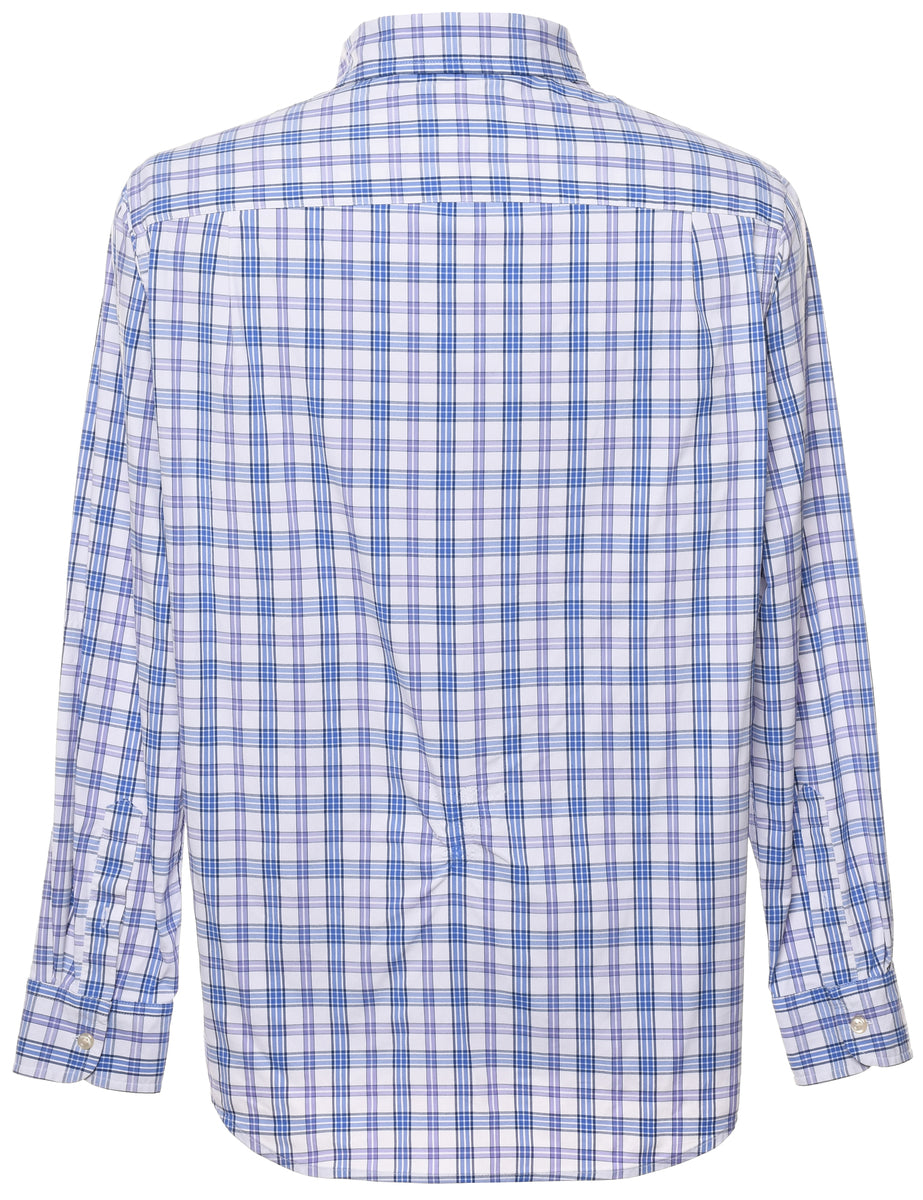 Long sleeved checked shirt in white & blue with one pocket. From the brand Chaps.