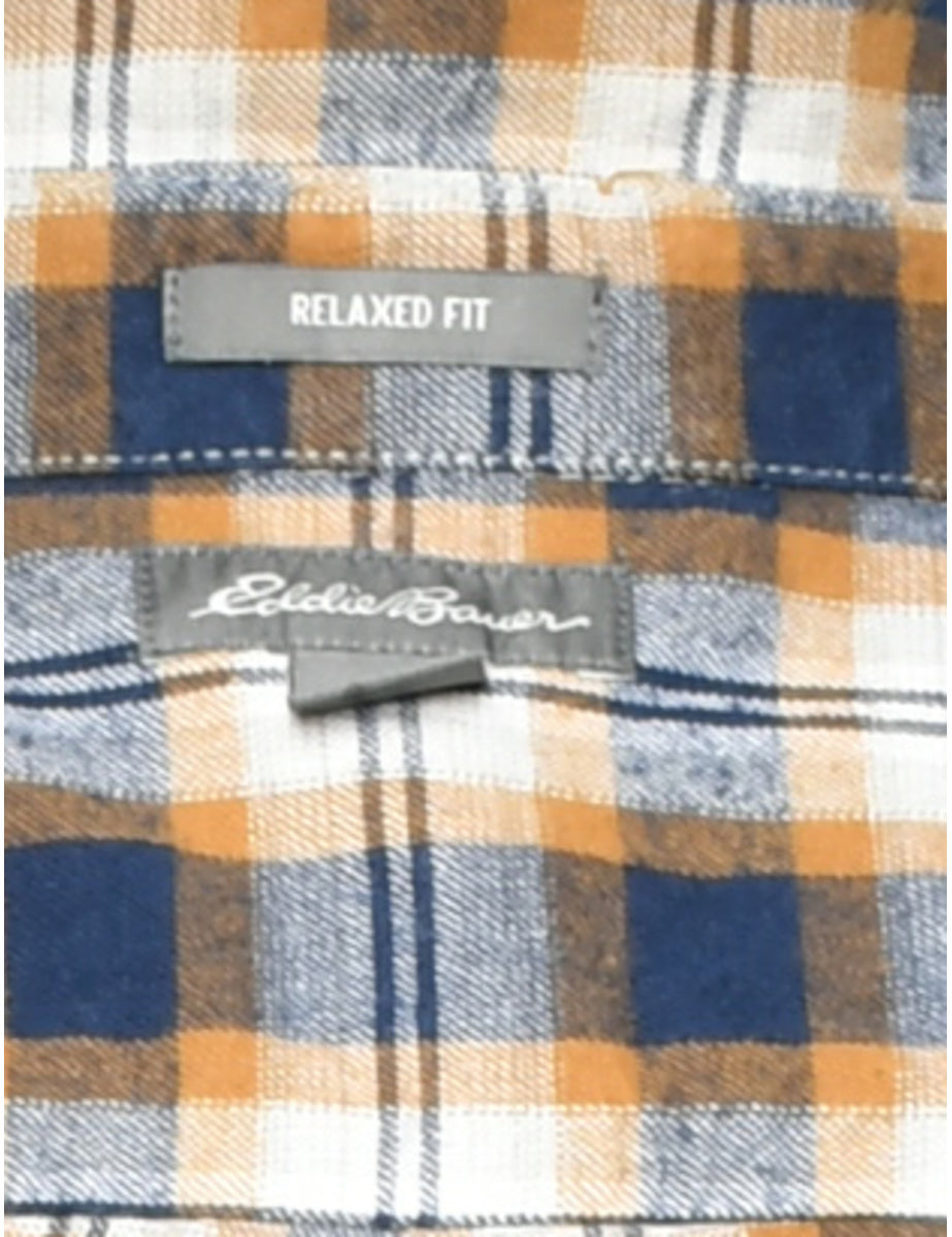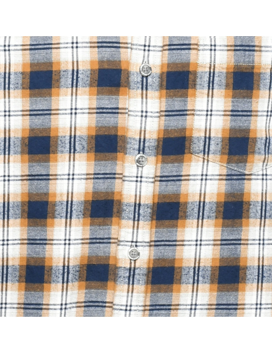 Navy & orange checked shirt with a button-down collar and one pocket.